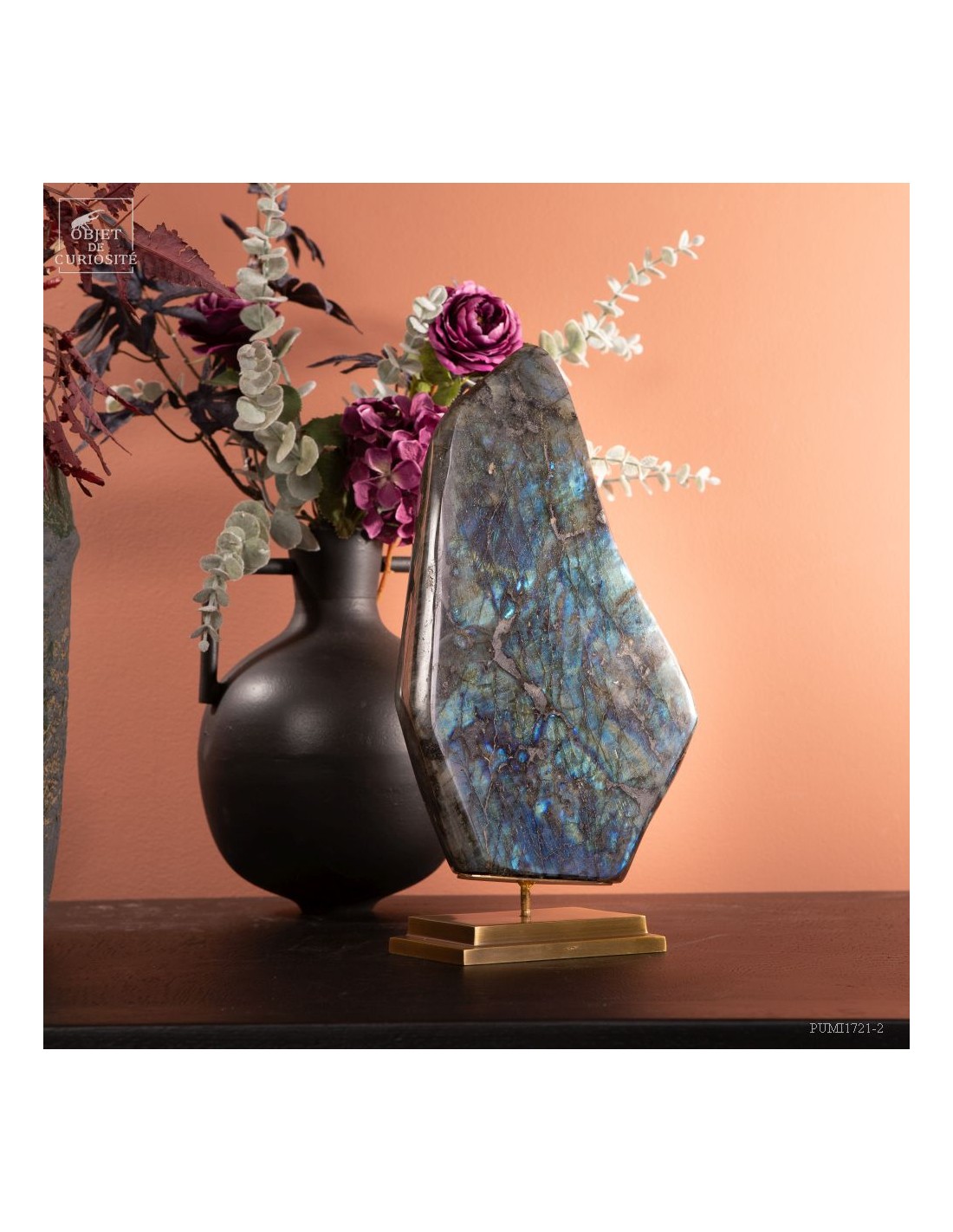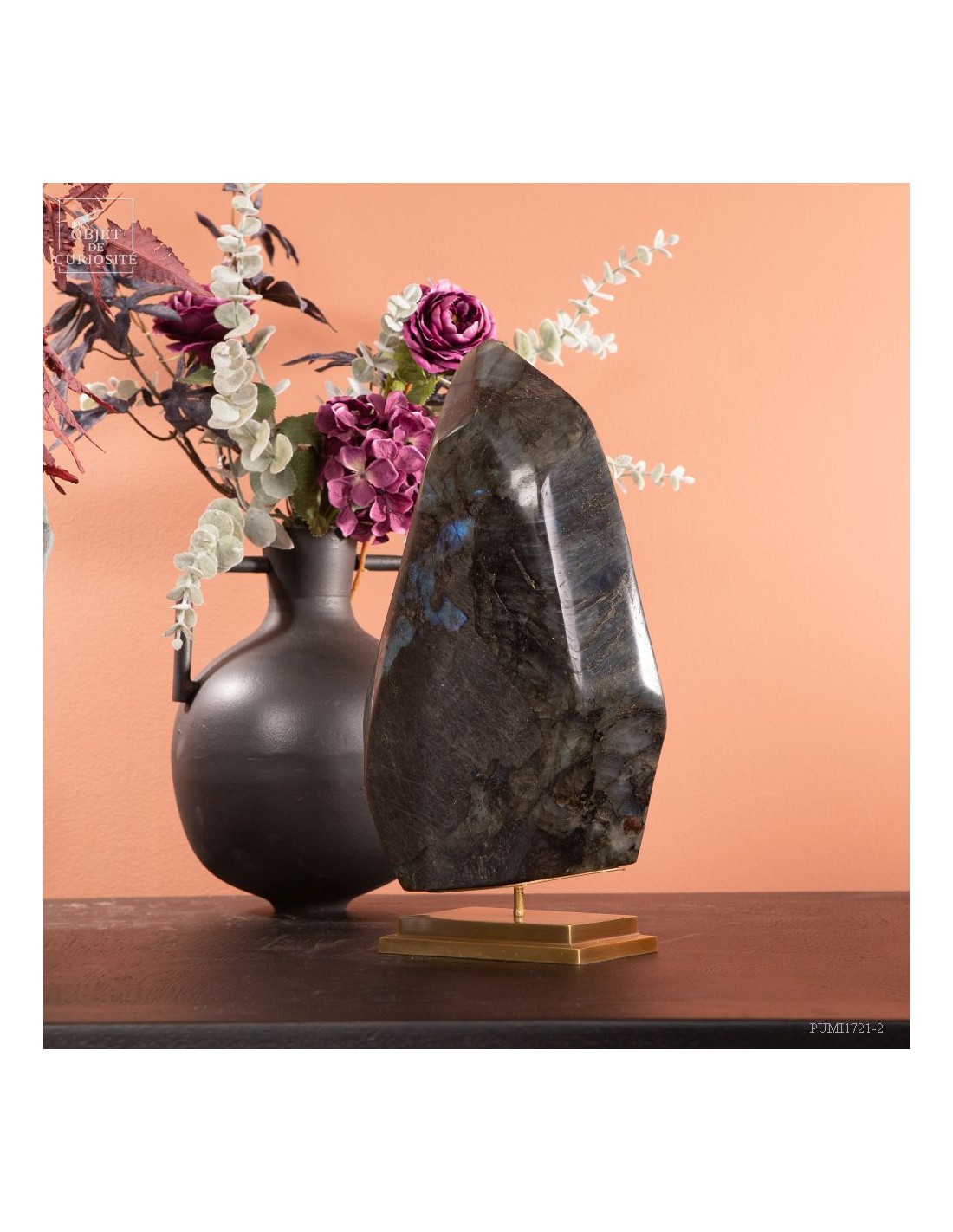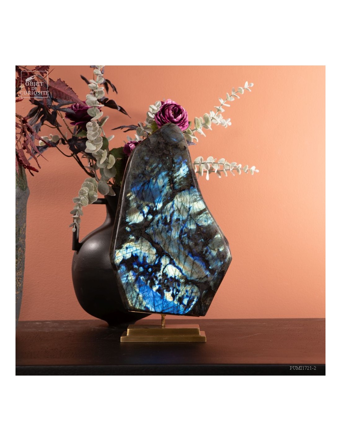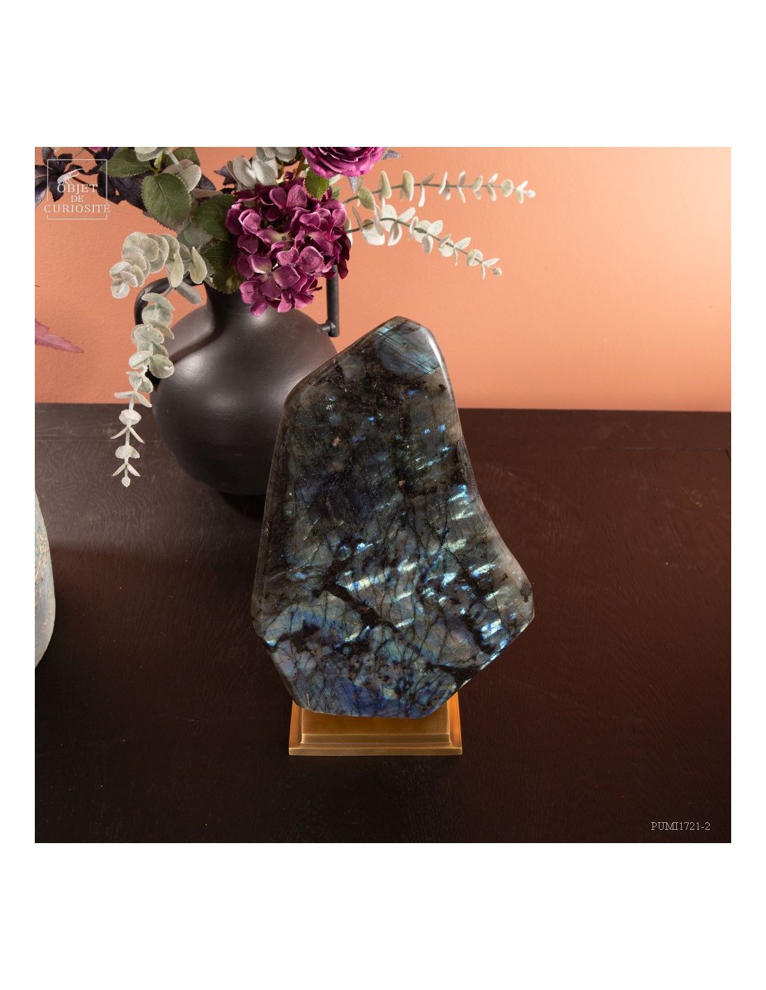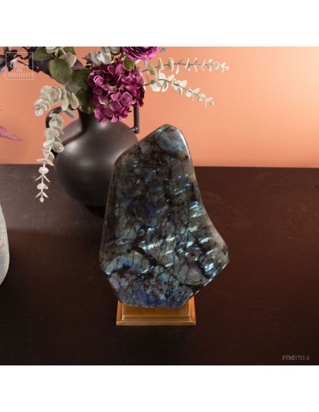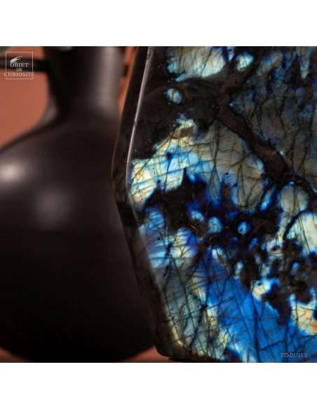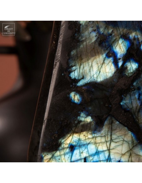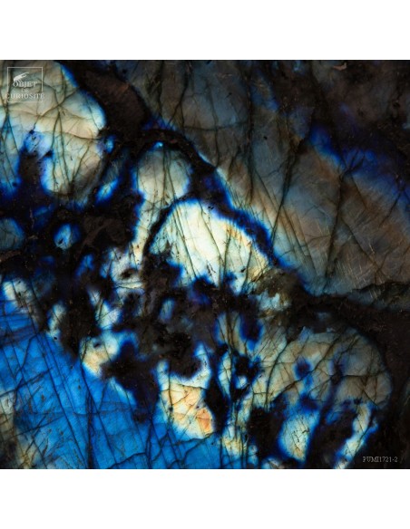 Labradorite de Madagascar avec 4 faces polies. Cette pierre présente des reflets métalliques d'un bleu foncé lumineux, suivant l'angle dans laquelle on la regarde: phénomène de l'adularescence. . Ce minéral est souvent recherché pour ses vertus protectrices contre les énergies négatives extérieures. Et tout le monde conviendra de ses vertus esthétiques indiscutables !