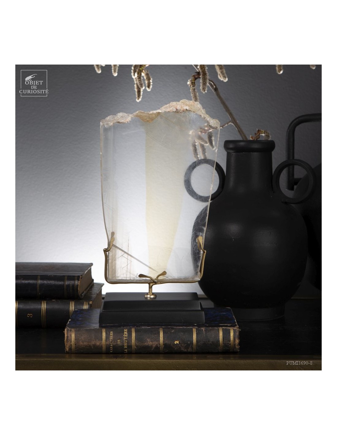 Ce cristal transparent de Gypse est Français, et provient du village au nom évocateur de Caresse dans le sud Ouest. La très grande transparence de cet impressionnant cristal est la signature des plus belles pièces trouvées dans cette mine. Sur base noire.