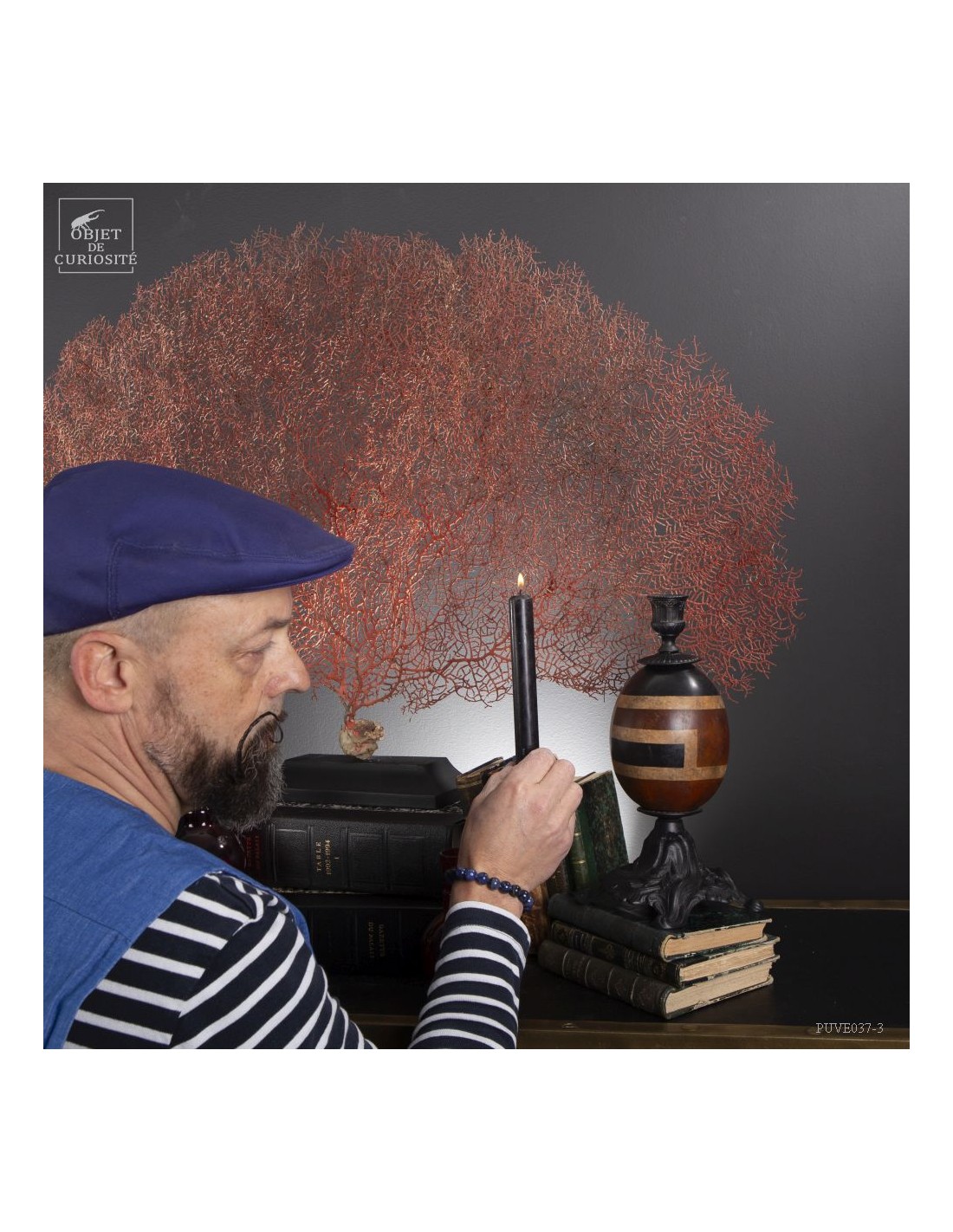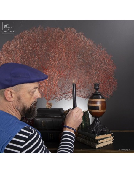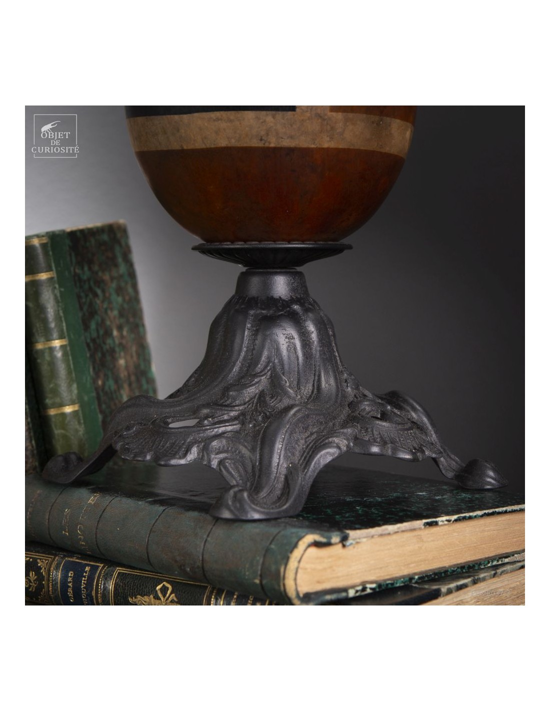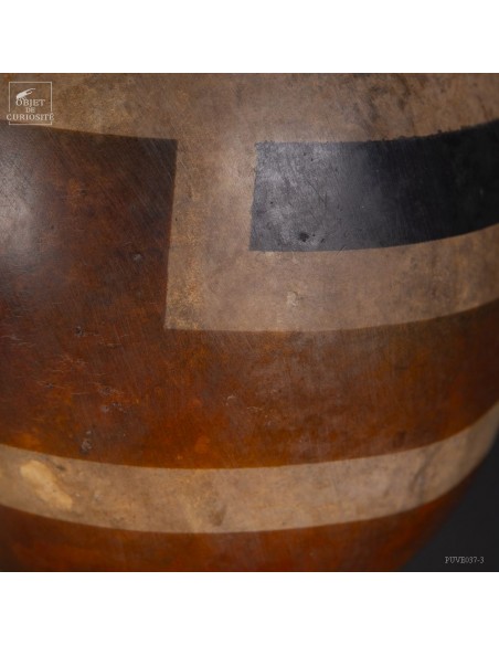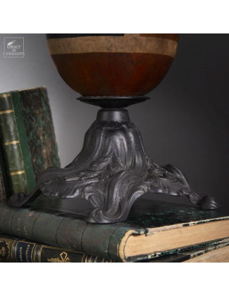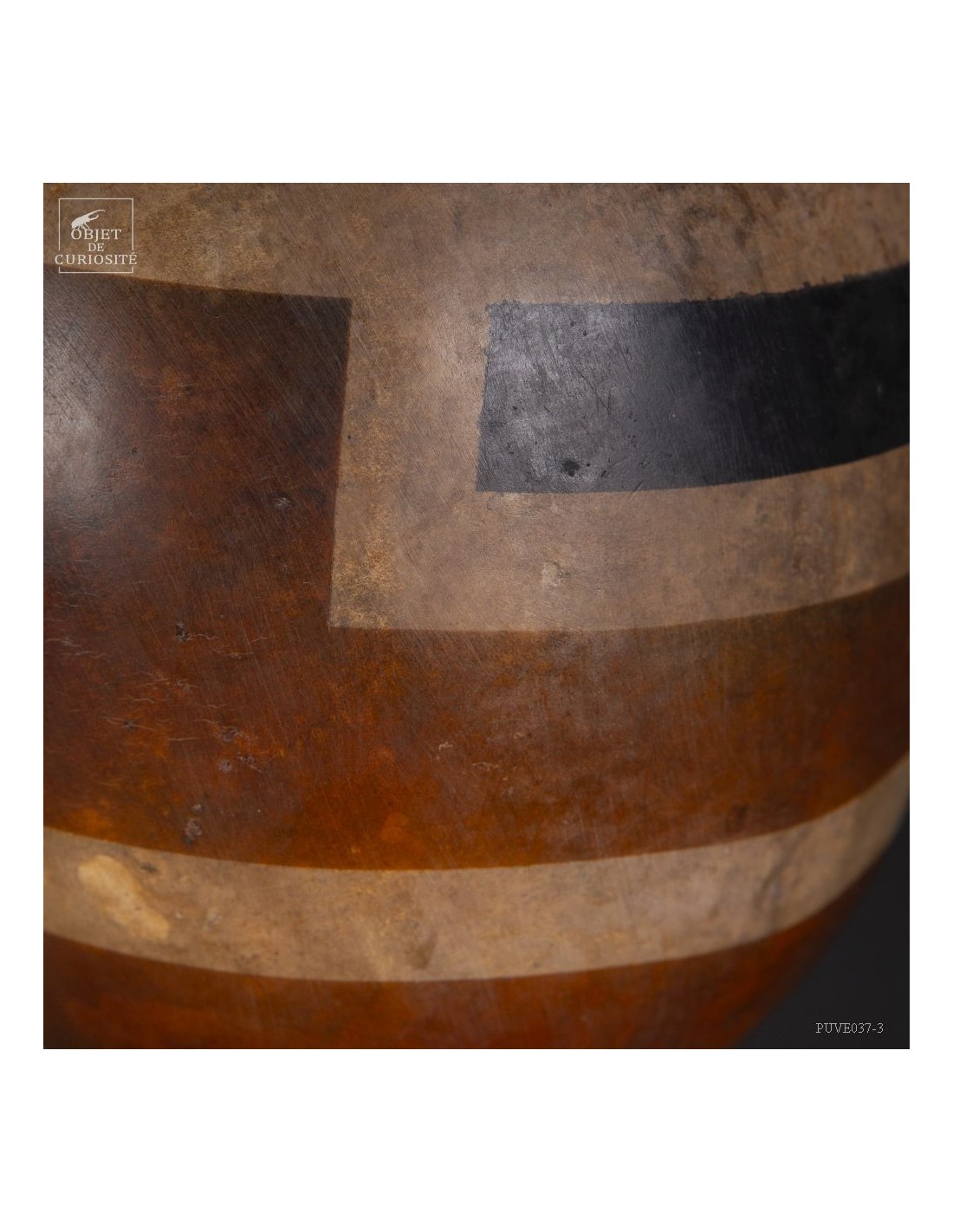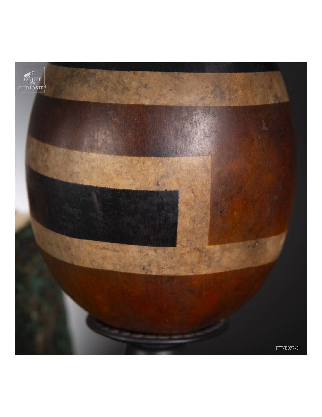 C'est en utilisant des teintures végétales uniquement que cet artiste Sud-africain a transformé ces légumes, traditionnellement utilisés comme récipients, en pièces d'art. Les motifs géométriques contemporains appliqués sur cette calebasse, évoquent des motifs et couleurs Africains. Le mélange avec notre laiton noir bien Européen en fait ce bougeoir unique, ou presque, puisque 4 pièces seulement ont été réalisées.