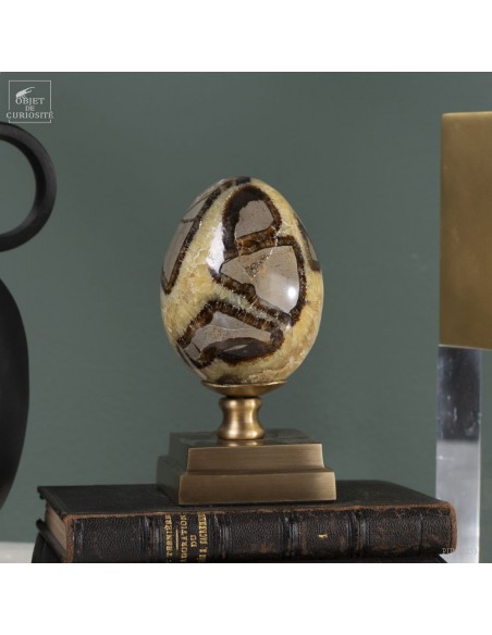 Un oeuf déguisé en girafe: carrément improbable! pourtant ce motif naturel issu d'une calcification d'un nodule argileux à Madagascar, ressemble étrangement au pelage d'une girafe. La nature est toujours surprenante. Même si, dans ce cas, la forme d'oeuf n'est pas vraiment naturelle.