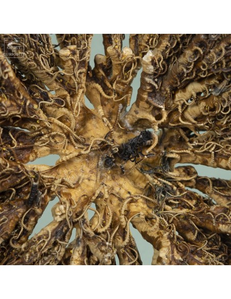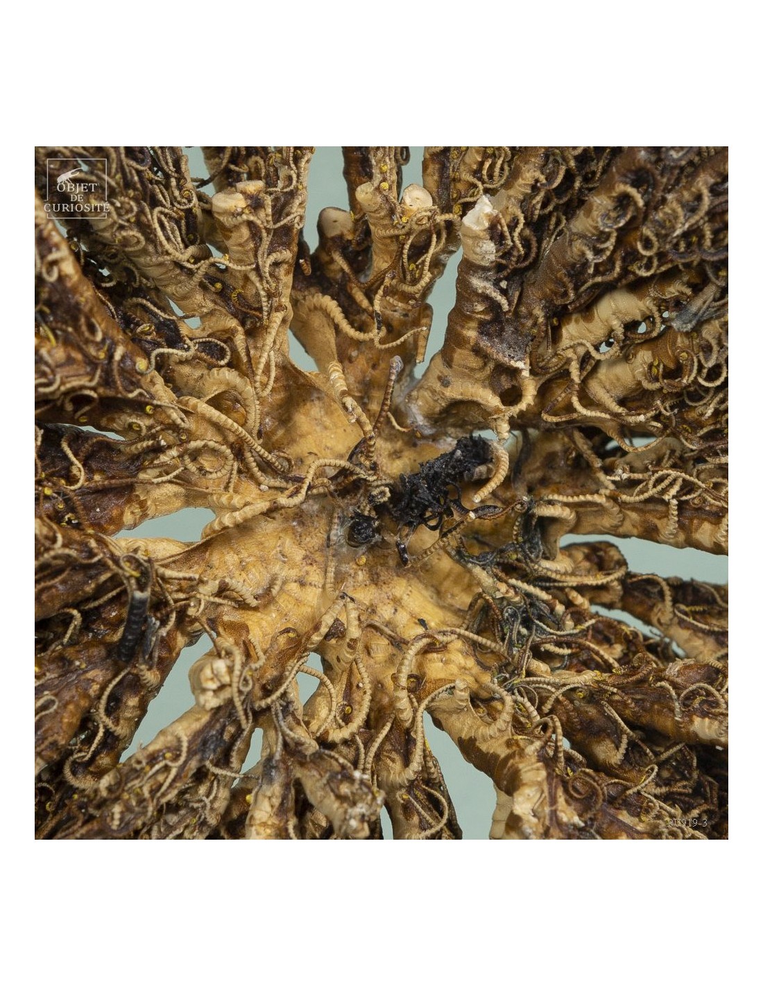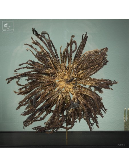 Un proche parent des Lis de mer (les crinoïdes), cet animal n'est pas relié au sol par un pédoncule. L'étoile de mer plume, une Comatule, se hissera sur un rocher ou un corail à partir duquel elle pourra filtrer l'eau avec ses très nombreux bras. Sa grande fragilité et la délicatesse de ses bras "frétillants" rend impossible de reproduire l'un des plus beaux spectacles qui soit dans le monde sous-marin: la nage d'une étoile de mer plume. Celle-ci vient des Philippines.