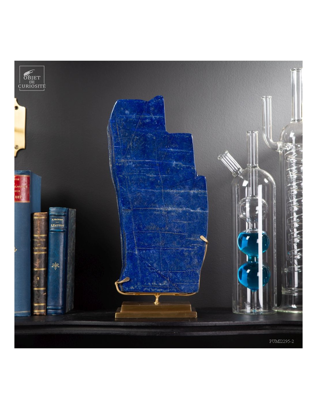 Les plus beaux Lapis-Lazuli proviennent de la province de Badakhshan an nord de l'Afghanistan. Dans une vallée étroite, recouverte de neige la majorité de l'année, des mines sont exploitées depuis 6000 ans! Les Sumériens, puis plus tard les Egyptiens appréciaient cette pierre bleue, comme en atteste les nombreuses statues et perles bleues que l'on a retrouvé dans les tombeaux des personnages importants. Et tous, comme celui-ci, provenaient des montagnes Afghanes. Le Lapis-Lazuli est une roche composée de 14 minéraux différents, dont le principal est la Lazurite bleue.