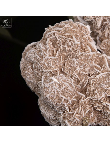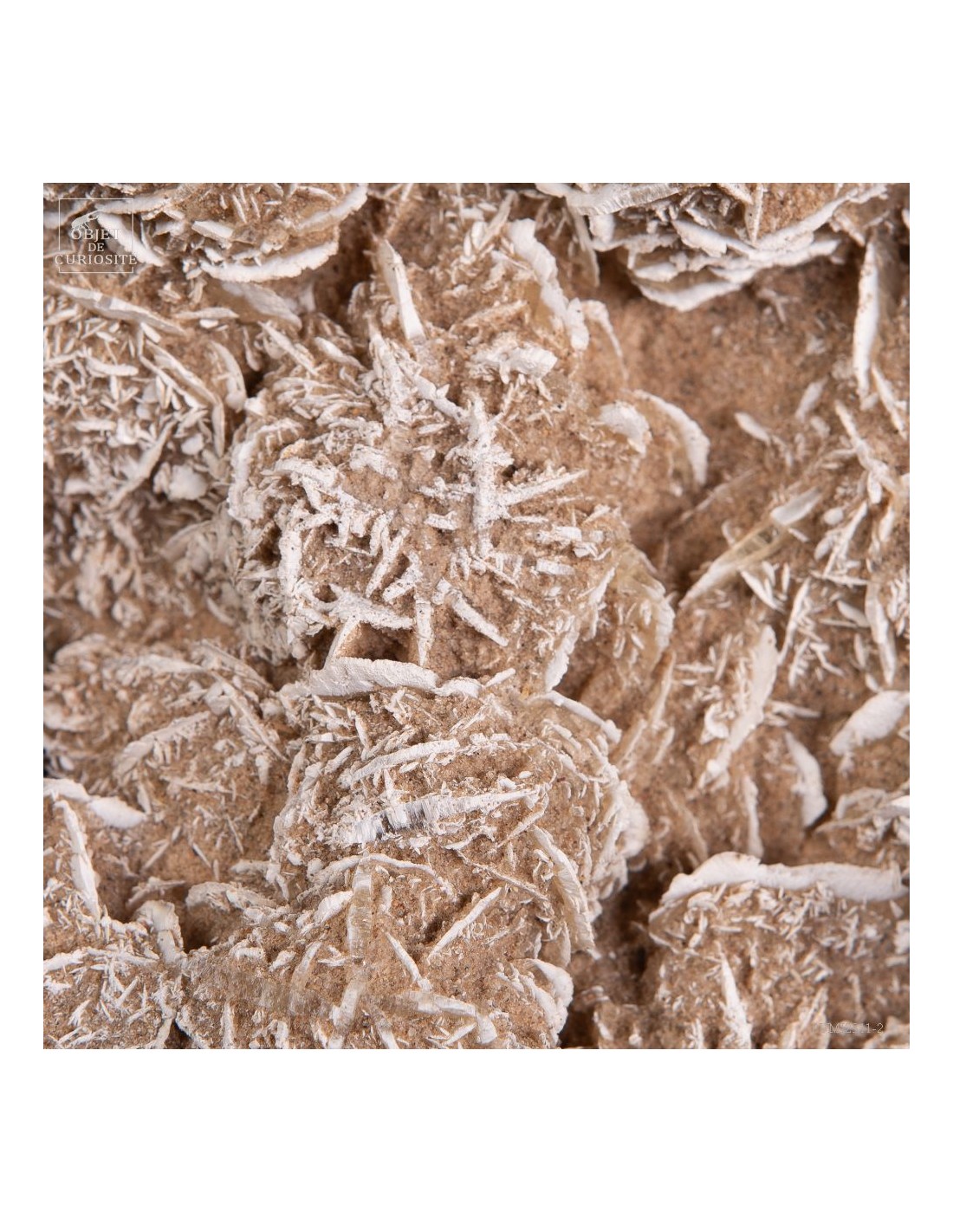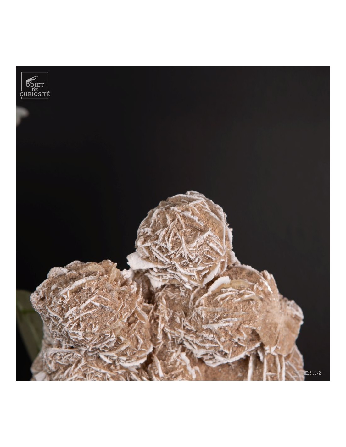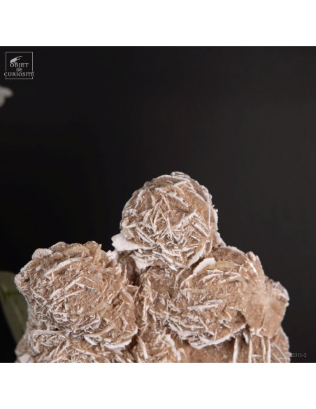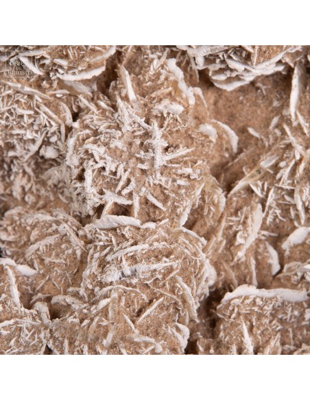 Chaque désert du monde a produit des roses des sables différentes. Ces groupes de cristaux de Sélénite en forme de boule, ont inclus de nombreux grains de sables, et dans ce cas du sable du désert de Chihuahua. Cette pièce a une forme tout en hauteur, faite de petites roses des sables et de pétales parfaits, agglomérés il y a plusieurs millions d'années à la suite de l'évaporation d'une mer peu profonde qui recouvrait ce désert situé entre le Mexique et les USA.