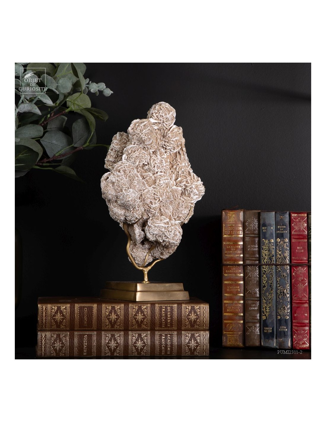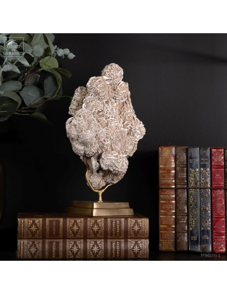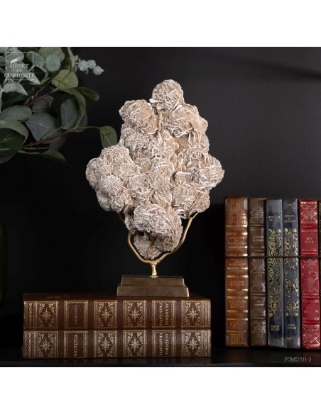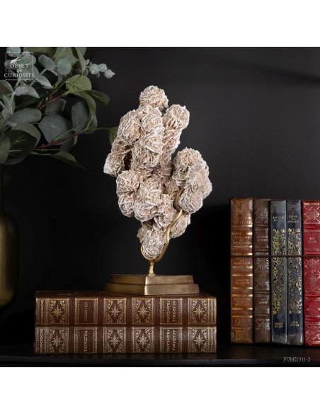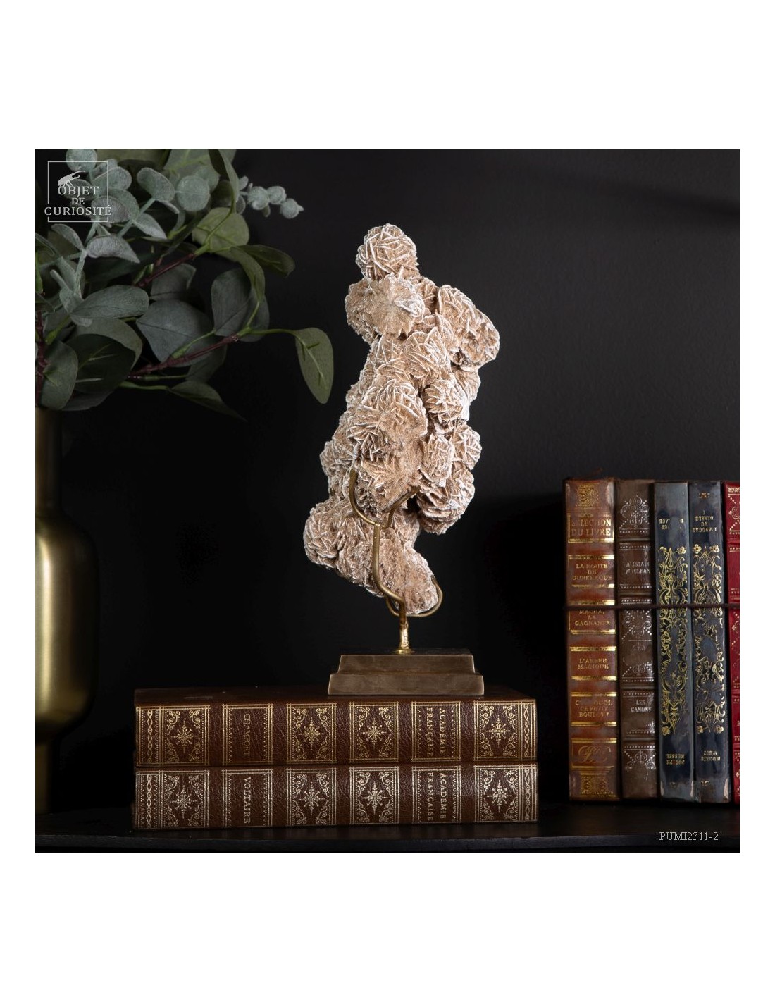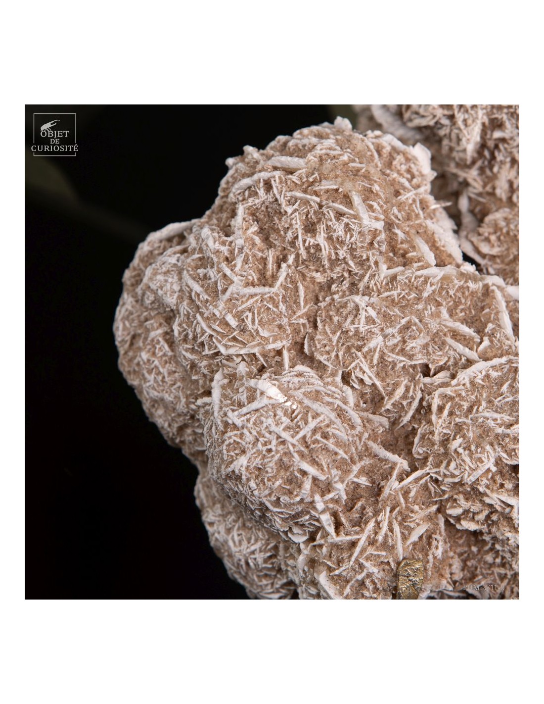 Chaque désert du monde a produit des roses des sables différentes. Ces groupes de cristaux de Sélénite en forme de boule, ont inclus de nombreux grains de sables, et dans ce cas du sable du désert de Chihuahua. Cette pièce a une forme tout en hauteur, faite de petites roses des sables et de pétales parfaits, agglomérés il y a plusieurs millions d'années à la suite de l'évaporation d'une mer peu profonde qui recouvrait ce désert situé entre le Mexique et les USA.