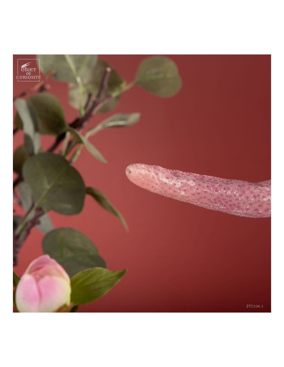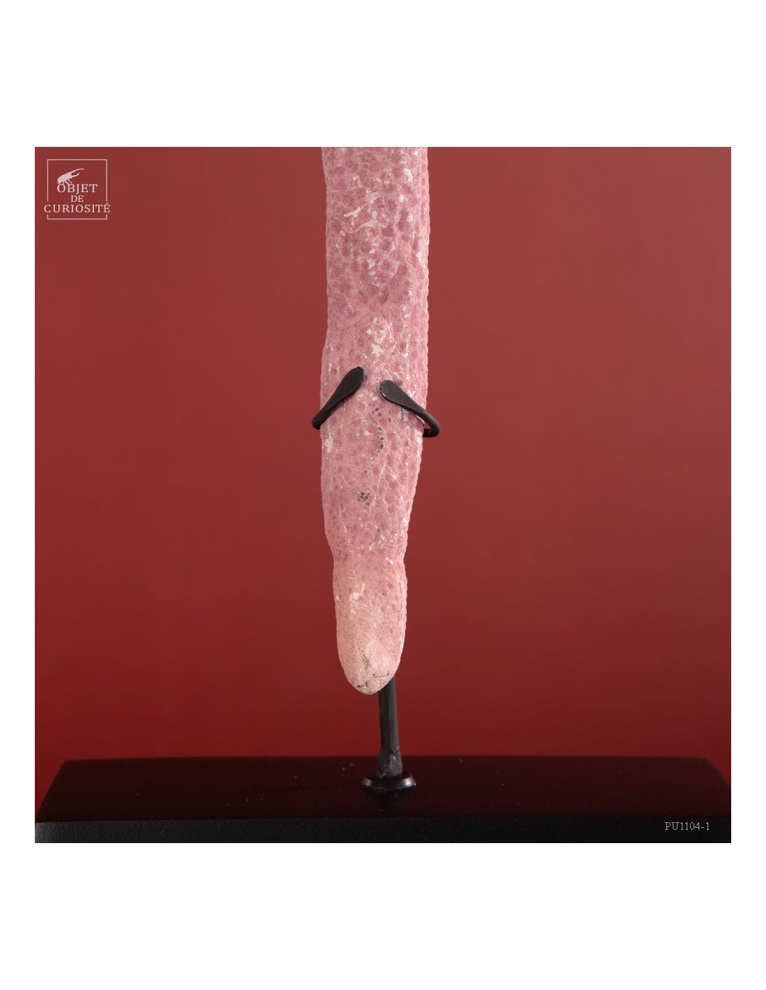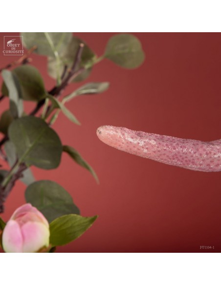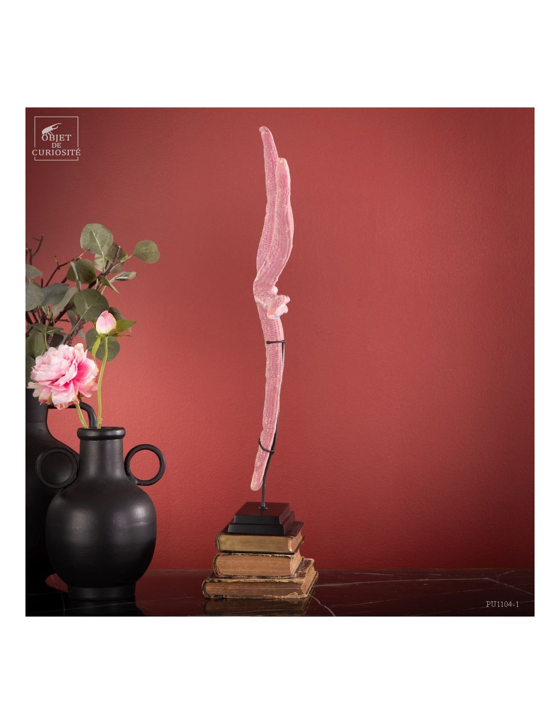Elle est naturellement rose, et géante: une étoile de mer Linckia des Philippines. Mais celle-ci est extrêmement rare: c'est une comète. Donc avec un bras plus grand que les autres. En effet les étoiles de mer ont cette capacité étonnante de faire repousser un bras qui a été sectionné (le plus souvent par un poisson ou un crabe qui a tenté de la dévorer). Mais le summum de la rareté, c'est quand l'étoile s'est recrée complètement à partir d'un seul bras! et c'est pour cela qu'un bras est plus long que les autres. Une curiosité rose.