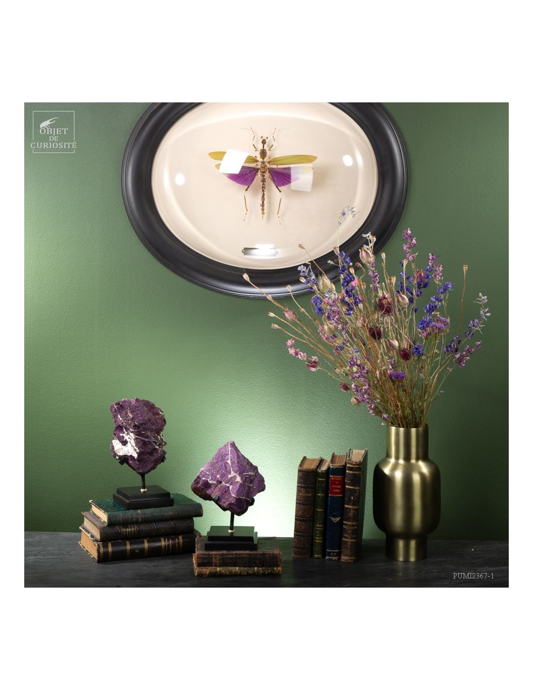 Si vous aimez le violet...En 2022 des blocs exceptionnels de Purpurite ont été découverts dans une mine Brésilienne de l'Etat de Minas Gerais. Ces blocs présentent un éclat violet remarquable. Leur surface importante permet d'admirer des reflets presque argentés lorsque l'on se déplace devant cette pierre. composée de phosphate de fer,et de manganèse. (mine de Divinos das Laranjeiras, près de la ville de Linopolis).