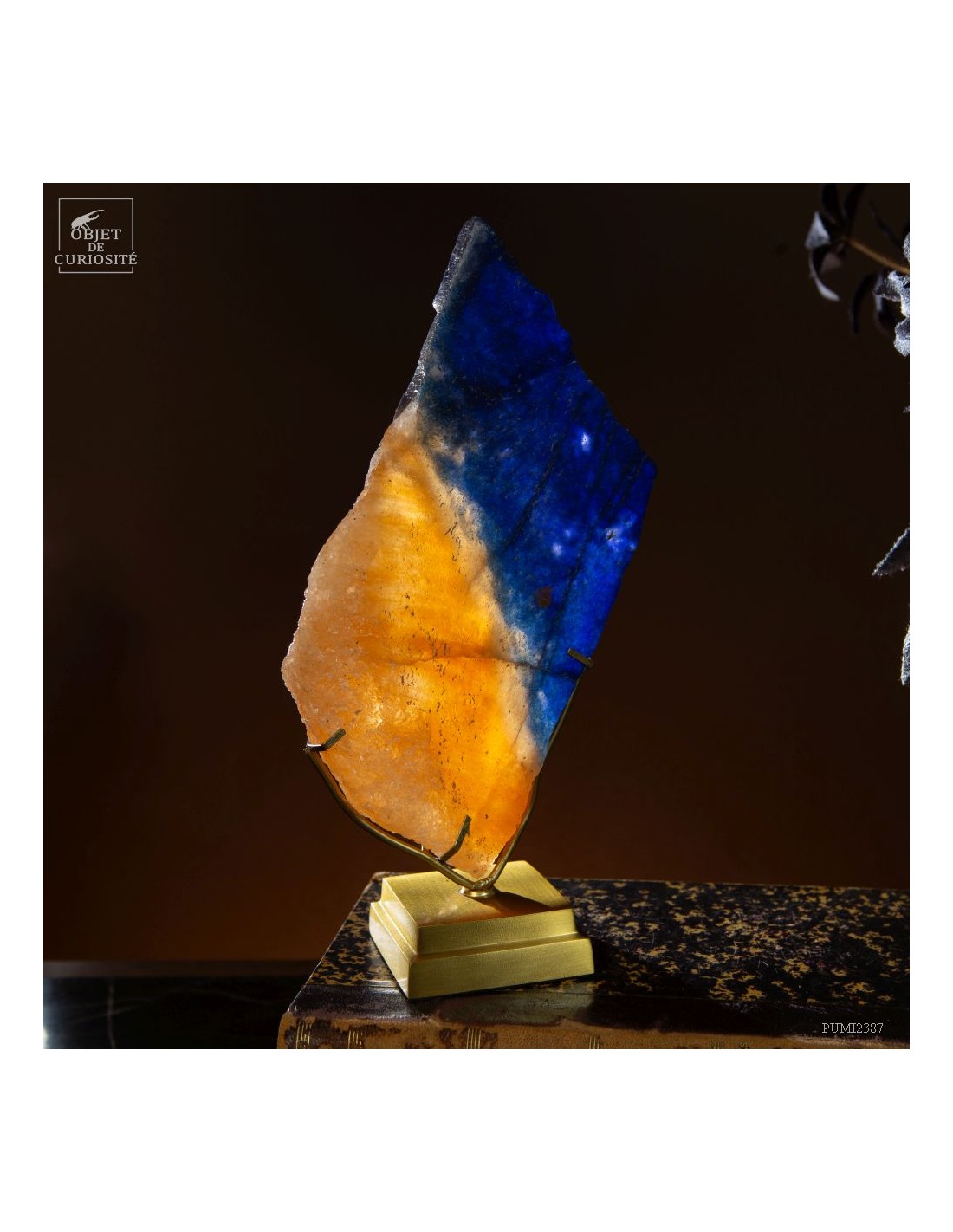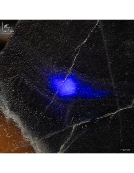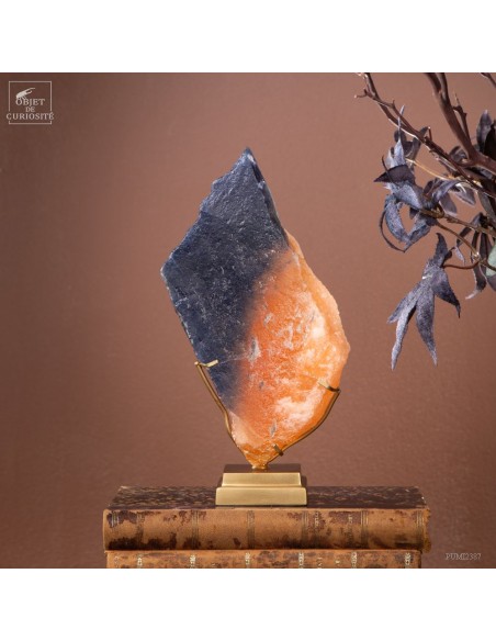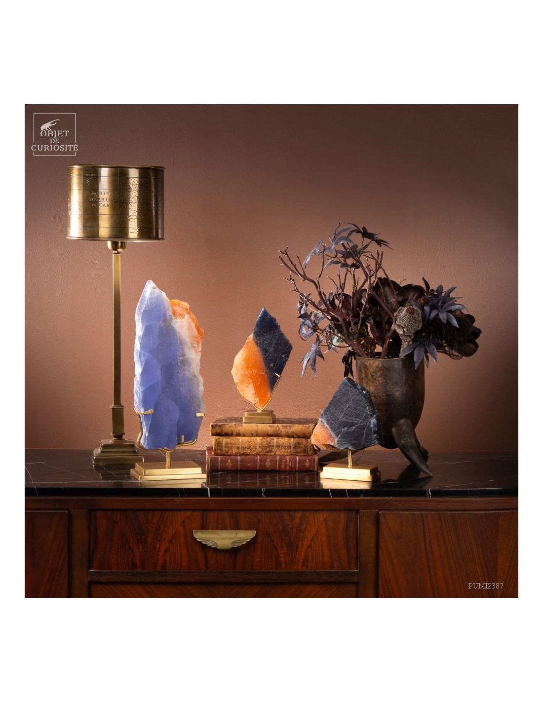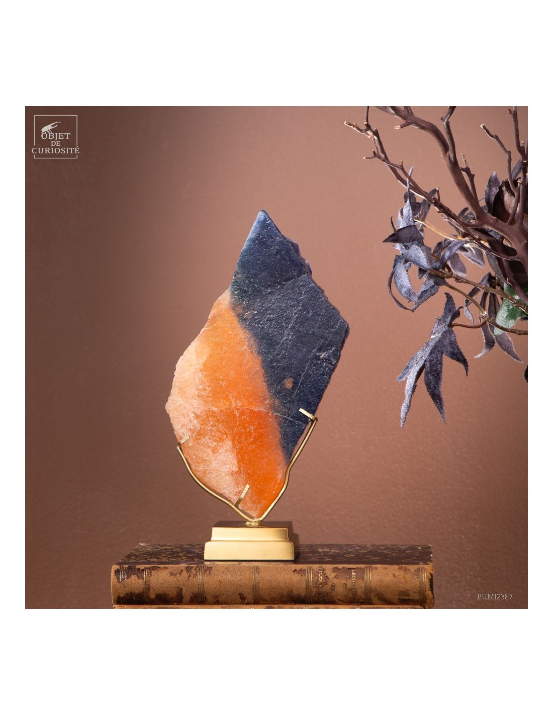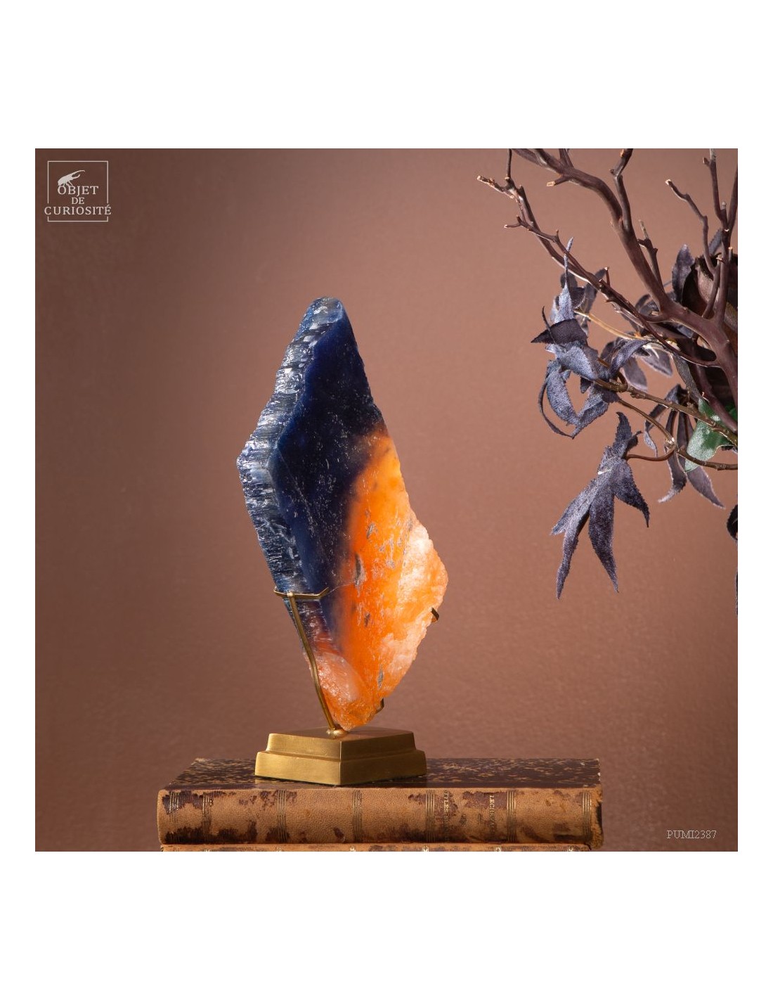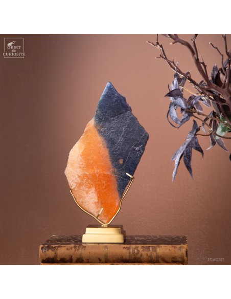 La mine de potasse d'Alsace, située dans la région du Grand Est en France, est l'une des plus importantes au monde. Elle exploite des gisements de potasse, un minerai essentiel pour la production d'engrais. Outre la potasse, la mine renferme également des gisements de sel gemme. et curiosité rare, il arrive que certaines veines se soient teintées de bleu! Le summum de la rareté: quant la vaine bleue côtoie une veine orange. et voici une pièce presque tricolore, exceptionnelle, et unique! C'est la plus grande que nous avons pu obtenir, et lorsque la lumière la traverse, comme sur les photos 2 et 3... C'est magique.