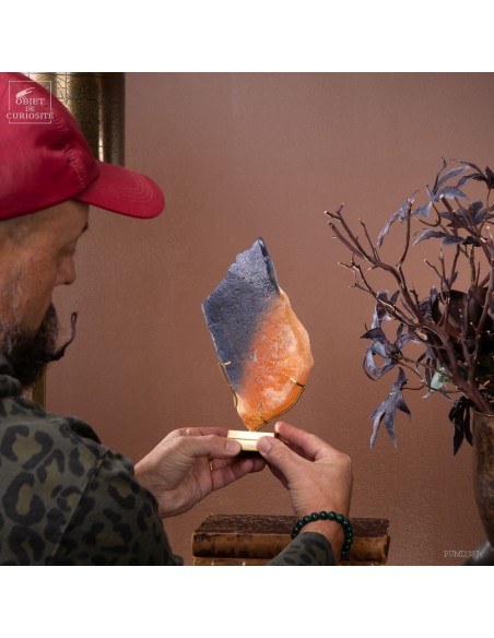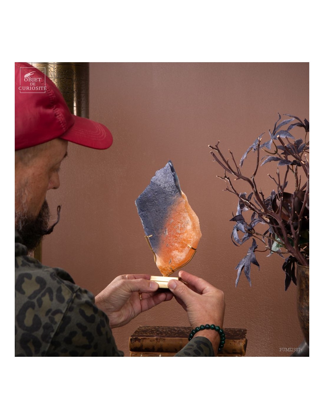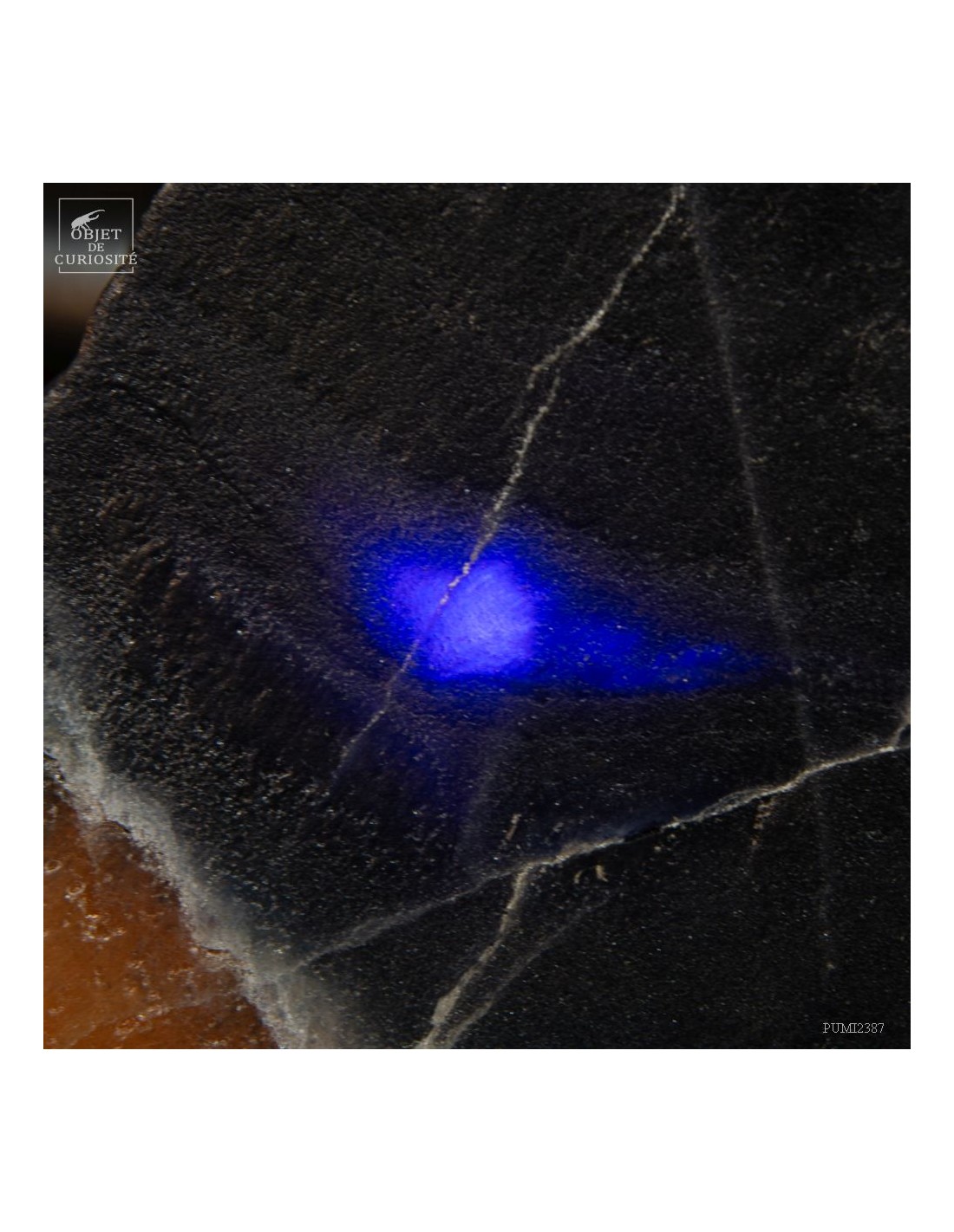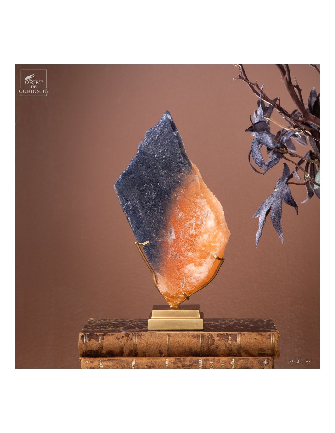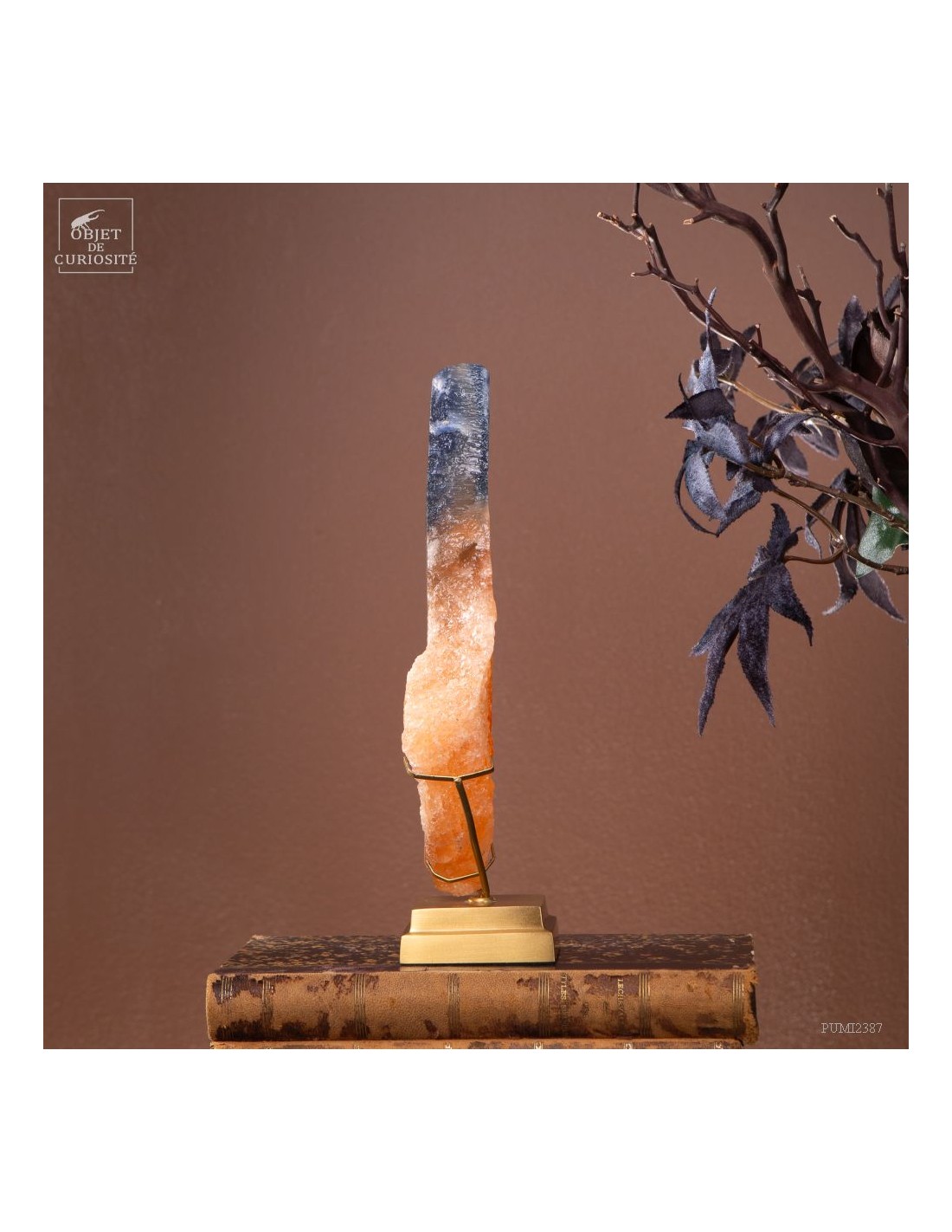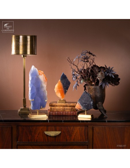 La mine de potasse d'Alsace, située dans la région du Grand Est en France, est l'une des plus importantes au monde. Elle exploite des gisements de potasse, un minerai essentiel pour la production d'engrais. Outre la potasse, la mine renferme également des gisements de sel gemme. et curiosité rare, il arrive que certaines veines se soient teintées de bleu! Le summum de la rareté: quant la vaine bleue côtoie une veine orange. et voici une pièce presque tricolore, exceptionnelle, et unique! C'est la plus grande que nous avons pu obtenir, et lorsque la lumière la traverse, comme sur les photos 2 et 3... C'est magique.