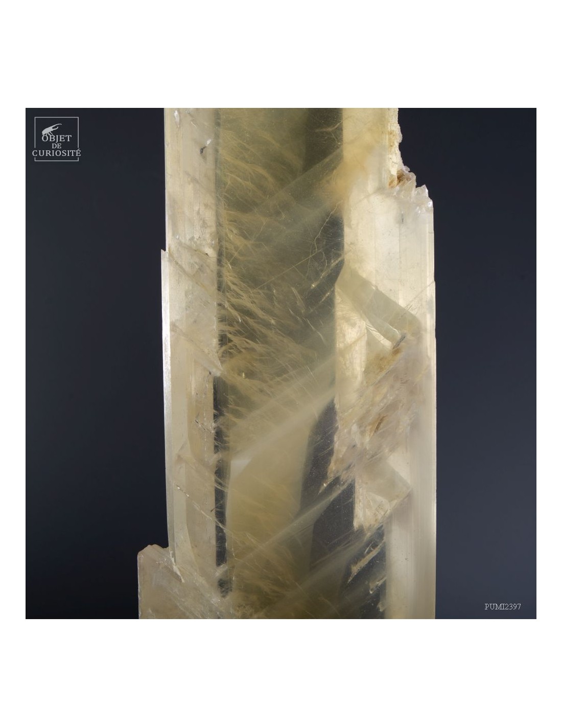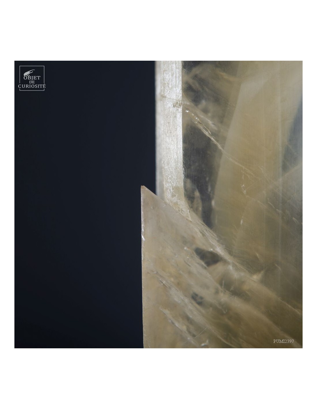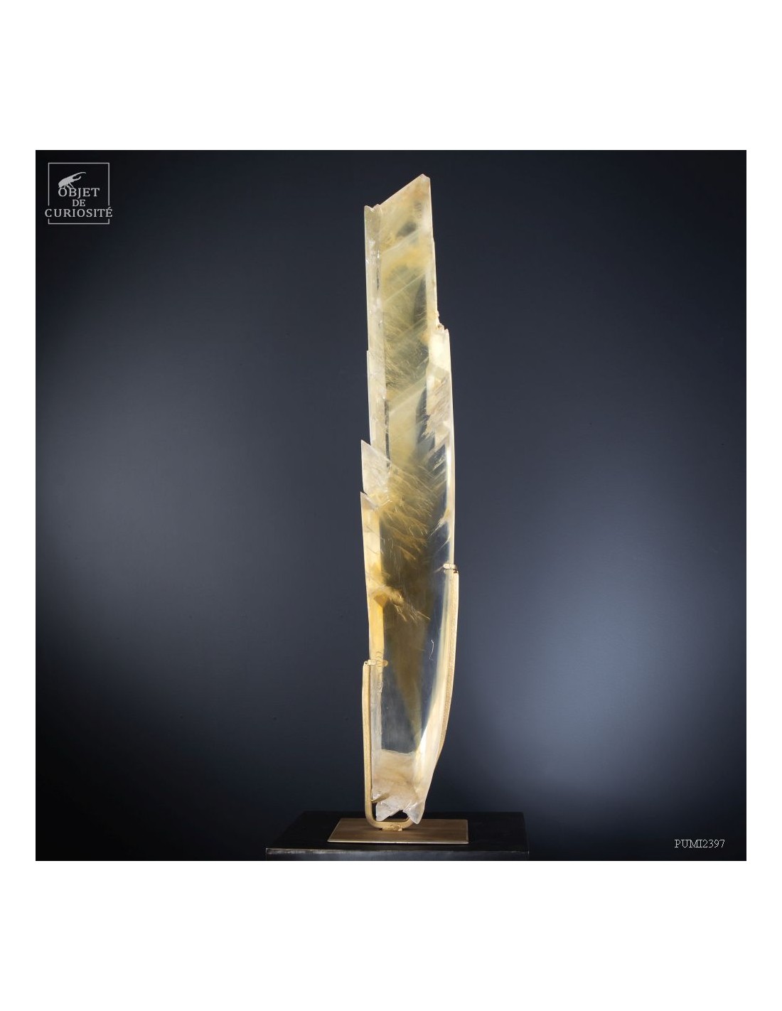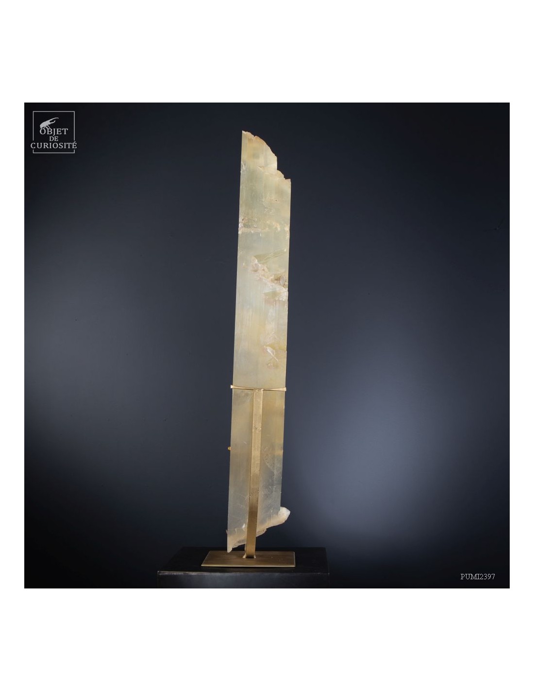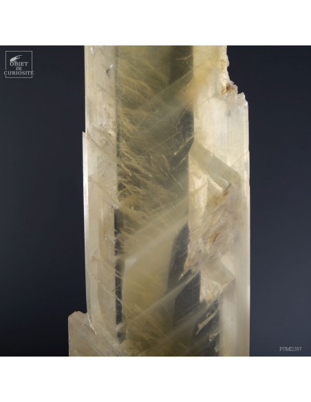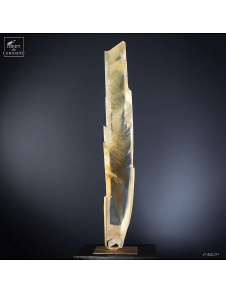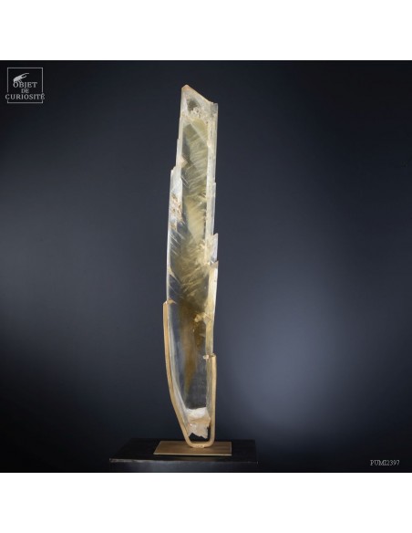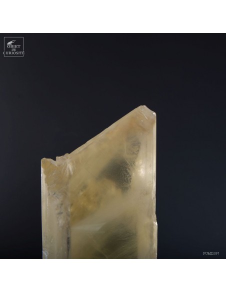 Ce cristal complet de Gypse est Français, et provient du village au nom évocateur de Caresse dans le sud Ouest. C'est l'un des deux plus grands cristaux de gypse trouvés dans cette mine. La très grande transparence de cet impressionnant cristal d'1 mètre de haut est la signature des plus belles pièces trouvées dans cette mine. Cette pièce en particulier était dans la collection de l'un des mineurs qui travaillait dans cette mine. Un minéral exceptionnel qu'il avait décidé de ne pas broyer, ce à quoi il était destiné, pour faire du plâtre. Cette mine n'est plus accessible, comme un nombre croissant de mines dans le monde. Il restera donc le plus grand exemplaire de gypse de Caresse, pour toujours.