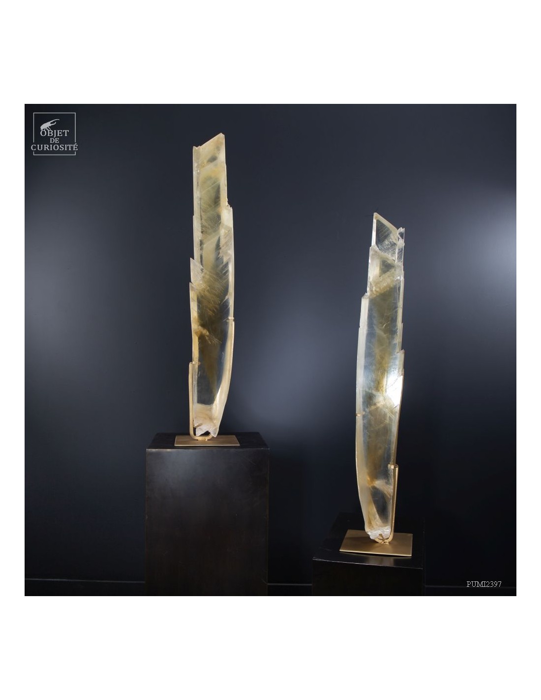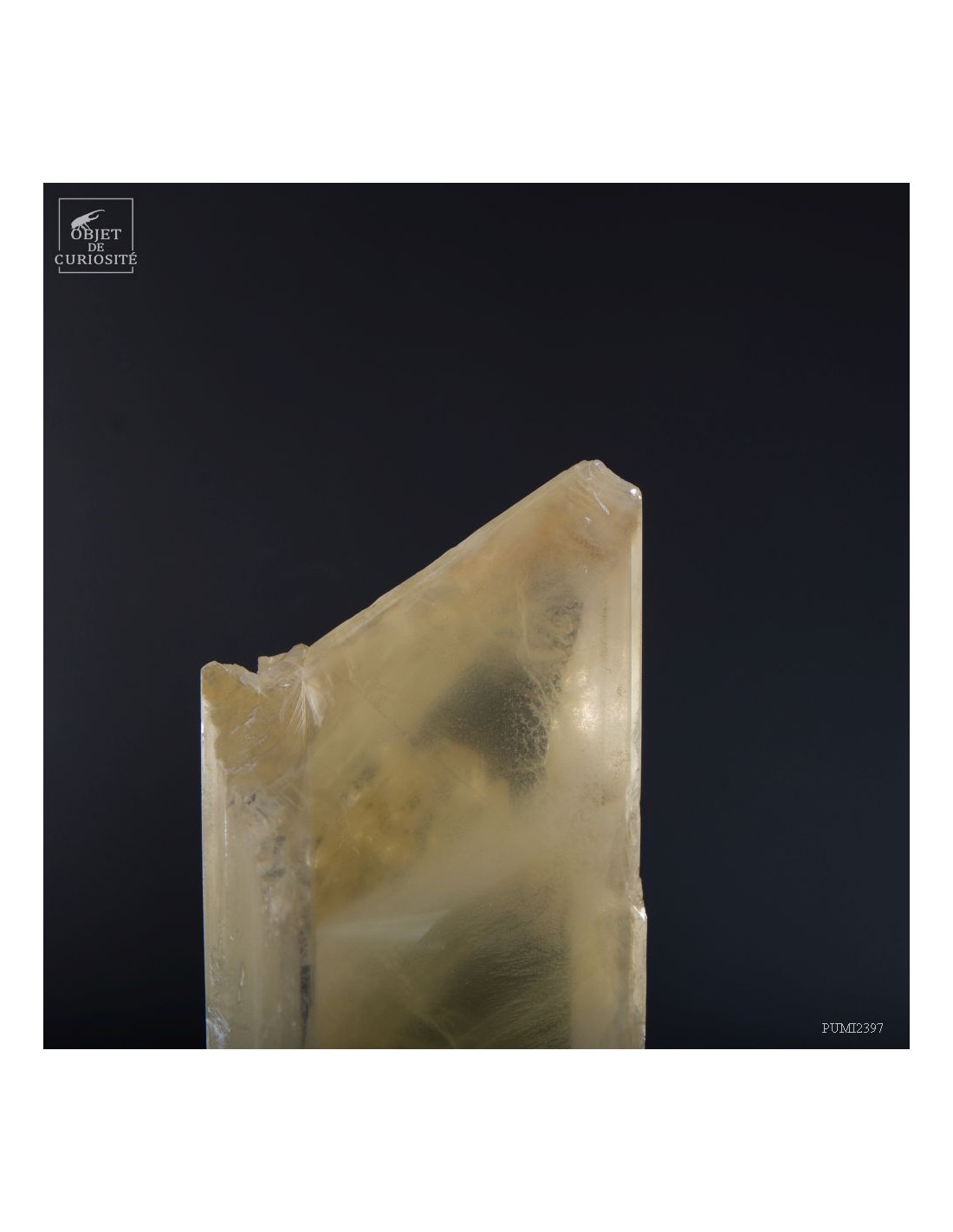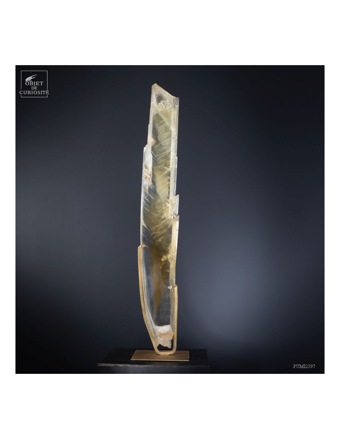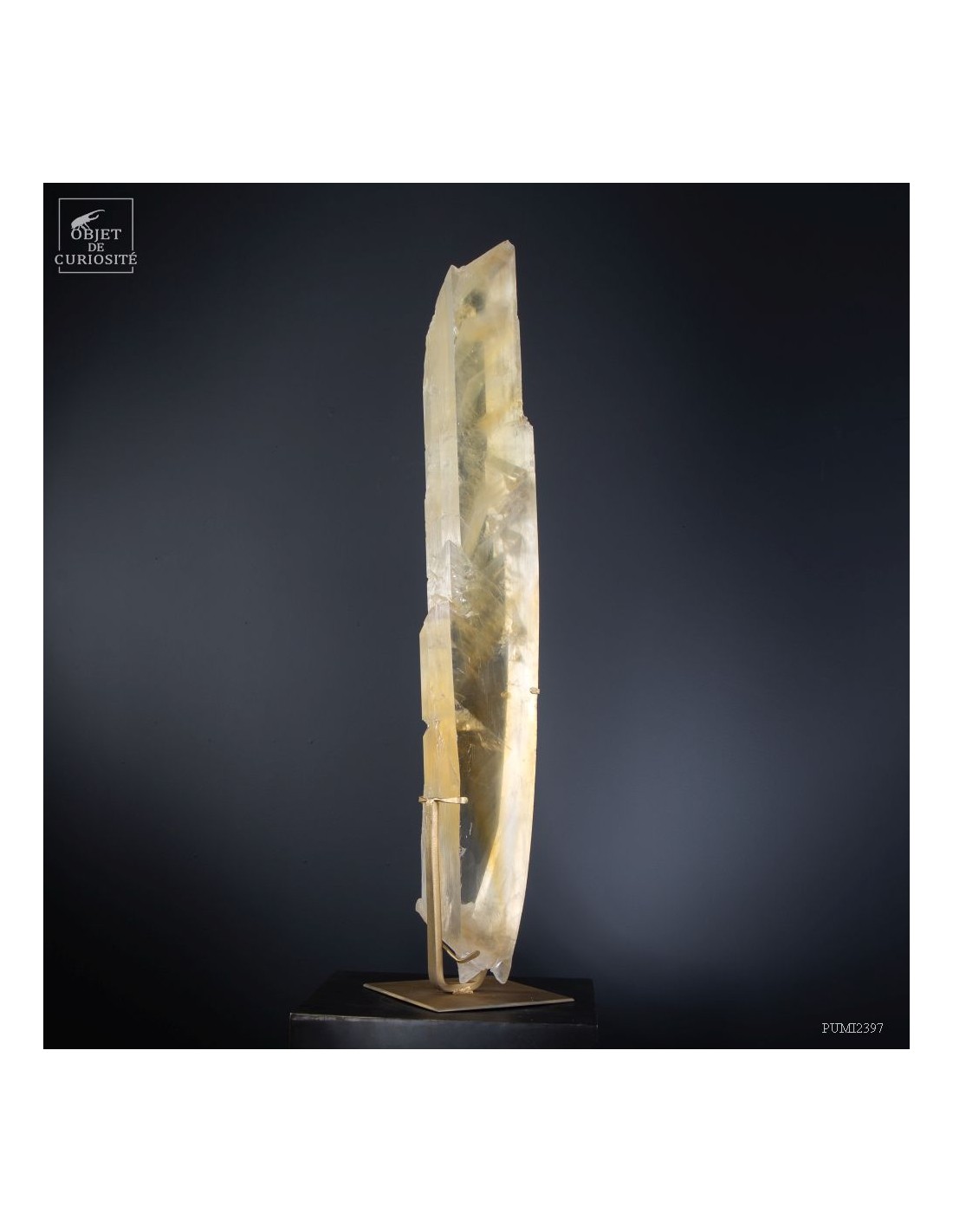 Ce cristal complet de Gypse est Français, et provient du village au nom évocateur de Caresse dans le sud Ouest. C'est l'un des deux plus grands cristaux de gypse trouvés dans cette mine. La très grande transparence de cet impressionnant cristal d'1 mètre de haut est la signature des plus belles pièces trouvées dans cette mine. Cette pièce en particulier était dans la collection de l'un des mineurs qui travaillait dans cette mine. Un minéral exceptionnel qu'il avait décidé de ne pas broyer, ce à quoi il était destiné, pour faire du plâtre. Cette mine n'est plus accessible, comme un nombre croissant de mines dans le monde. Il restera donc le plus grand exemplaire de gypse de Caresse, pour toujours.