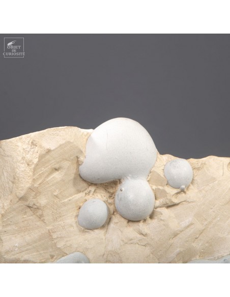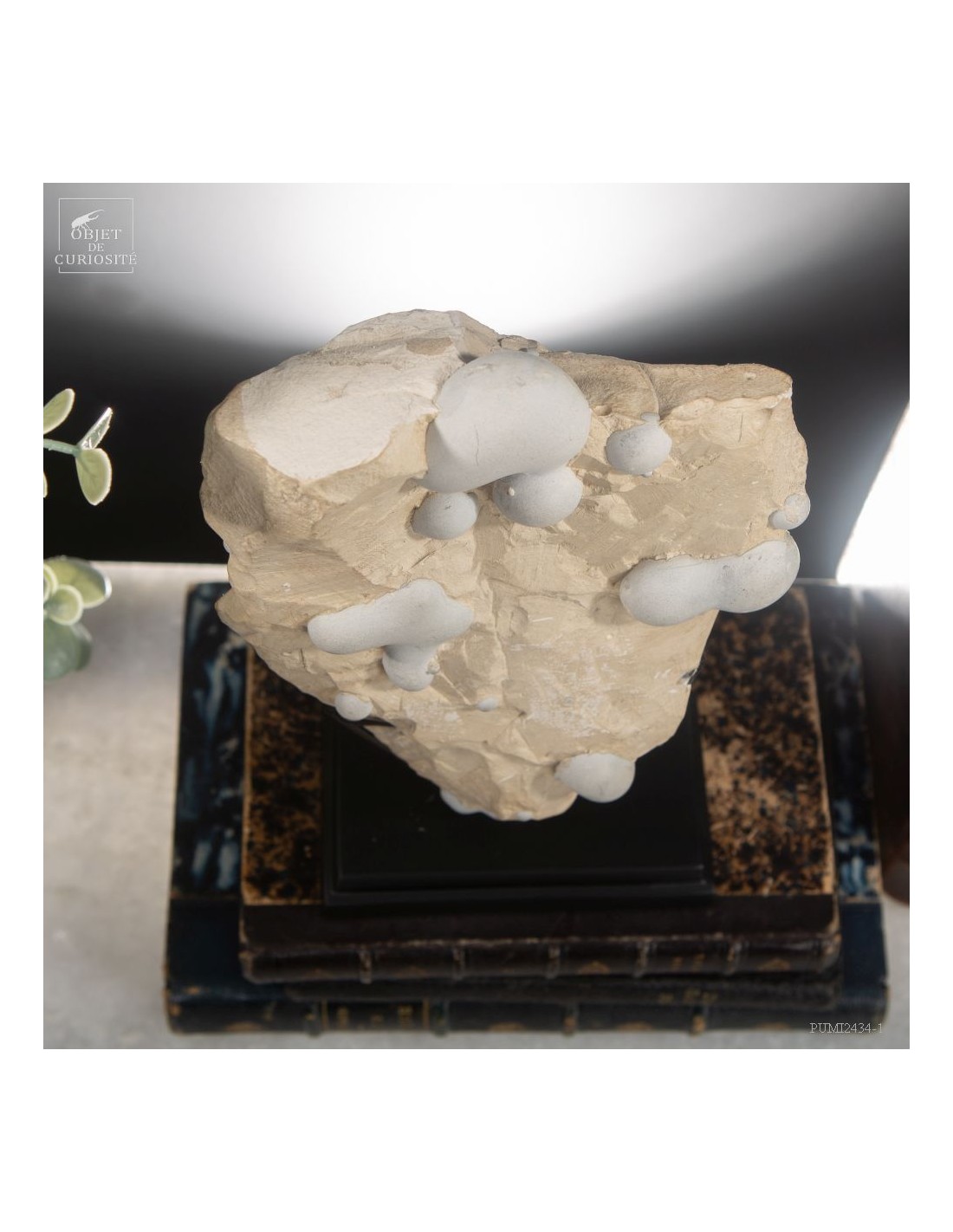Voici un minéral bien étrange et plutôt rare: l'Opale Ménilite. Initialement découverte et nommée à Ménilmontant, Paris. Découverte comme nodules dans le schiste, formation de Menilite? en 1795. Mais ce groupe provient du Sud de l'Espagne: Agramon, près de Murcia.