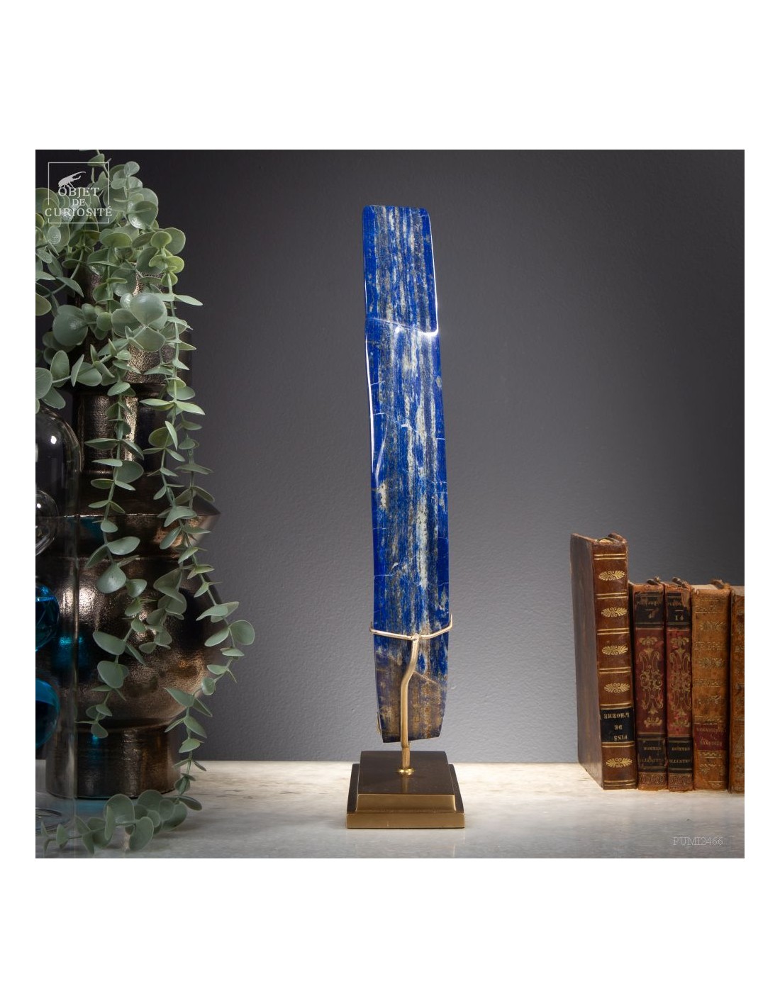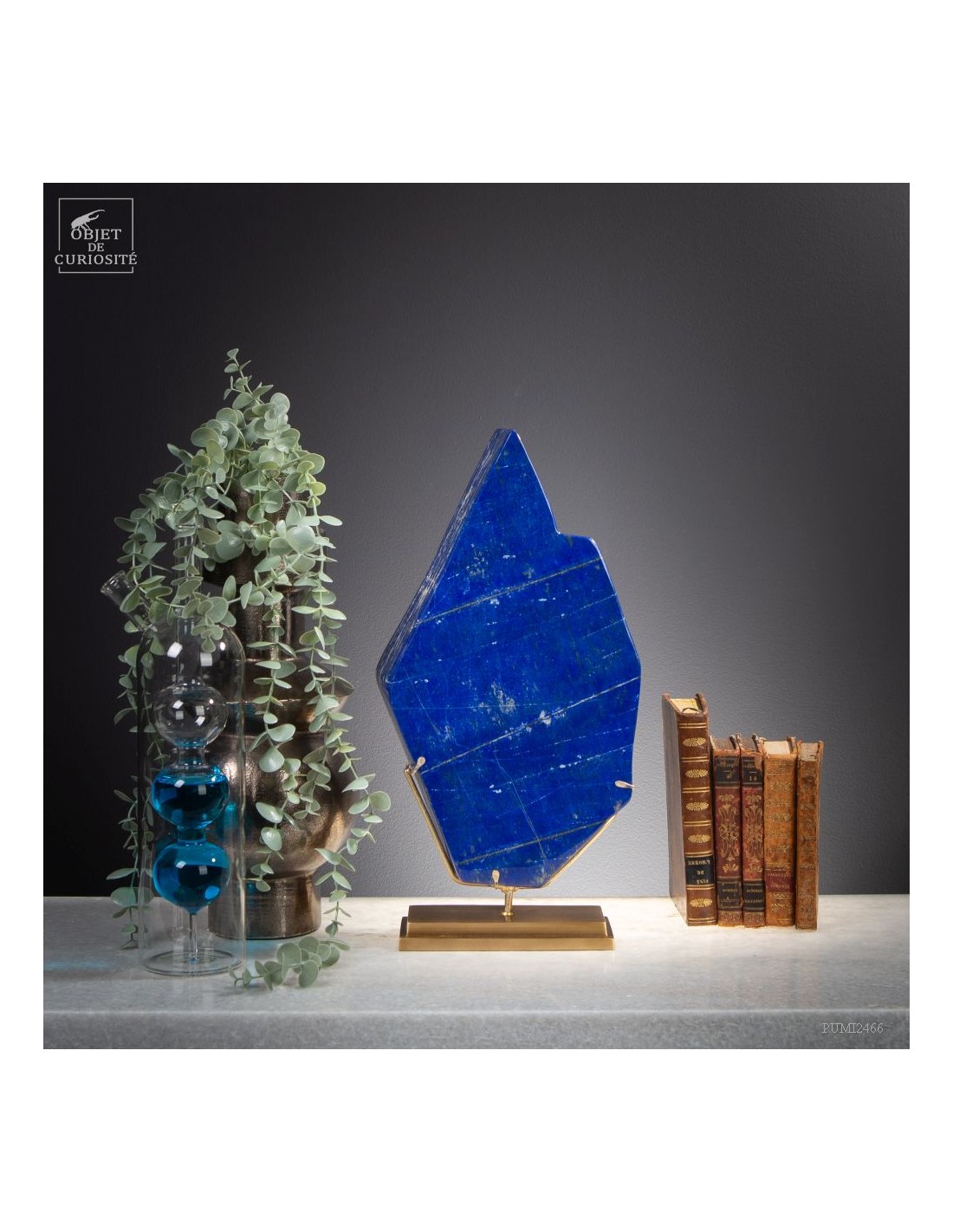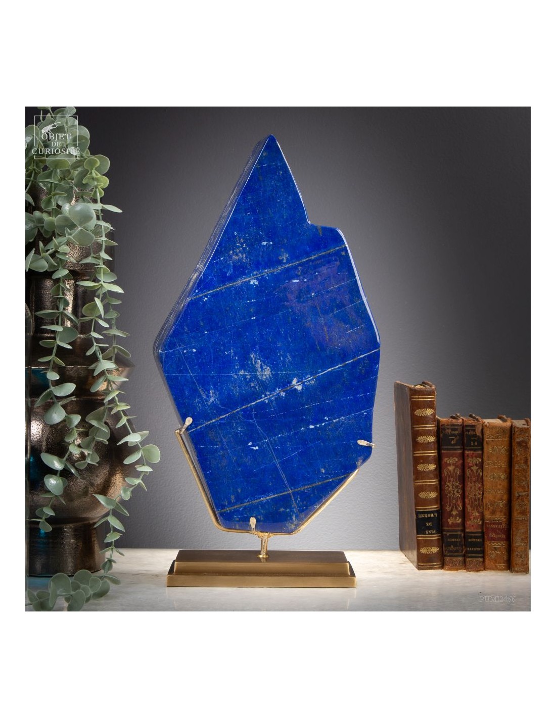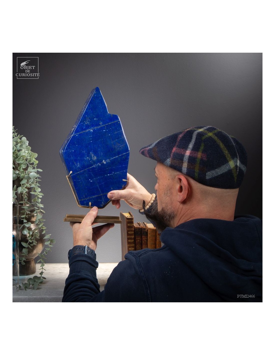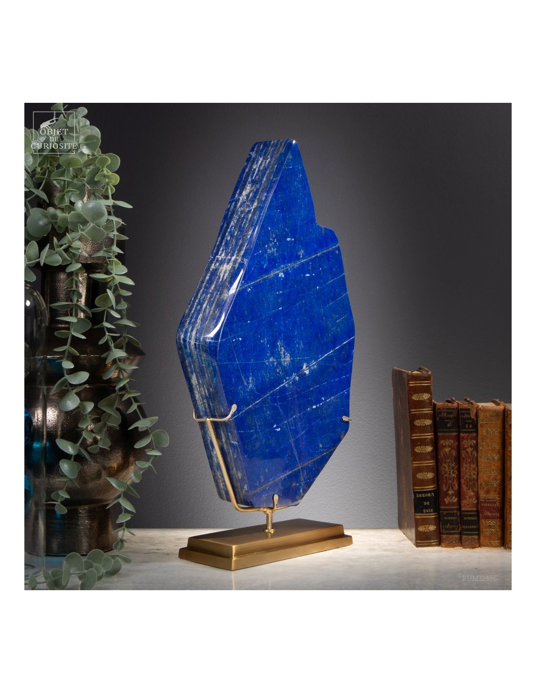 Les plus beaux Lapis-Lazuli proviennent de la province de Badakhshan an nord de l'Afghanistan. Dans une vallée étroite, recouverte de neige la majorité de l'année, des mines sont exploitées depuis 6000 ans! Les Sumériens, puis plus tard les Egyptiens appréciaient cette pierre bleue, comme en atteste les nombreuses statues et perles bleues que l'on a retrouvé dans les tombeaux des personnages importants. Et tous, comme celui-ci, provenaient des montagnes Afghanes. Le Lapis-Lazuli est une roche composée de 14 minéraux différents, dont le principal est la Lazurite, bleue, et la petite touche dorée apportée par la Pyrite qui parsème ce minéral. Celui-ci est de qualité extra: on pourrait tailler de nombreuses pierre pou bijoux dedans.