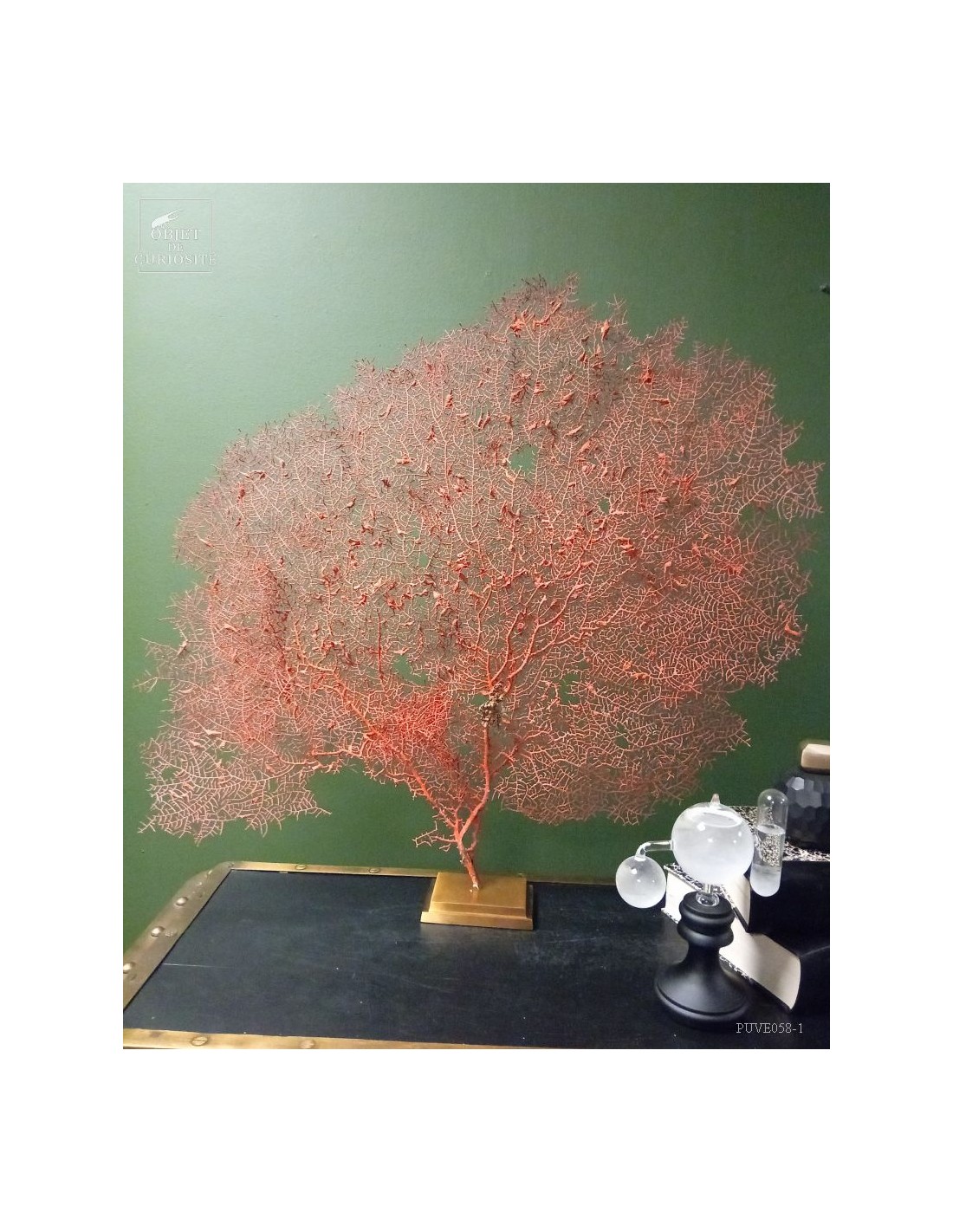Fixés perpendiculairement à leur support, les ramifications colonisées de polypes filtrent l'eau au gré du courant pour capturer les micro-organismes en suspension. Cette pièce sur une base laiton provient de Micronésie: Melithaea ochracea.