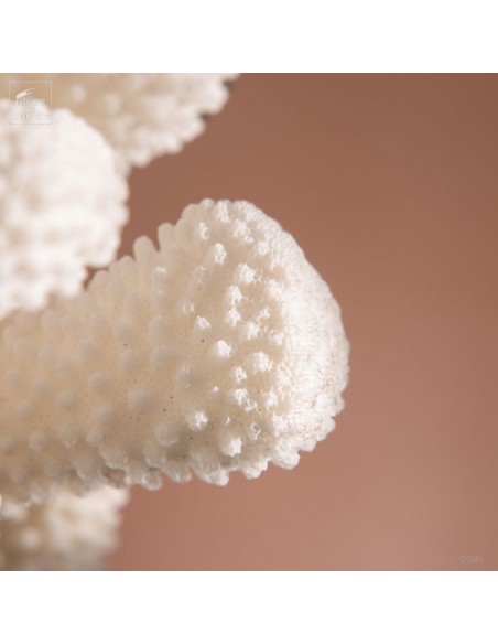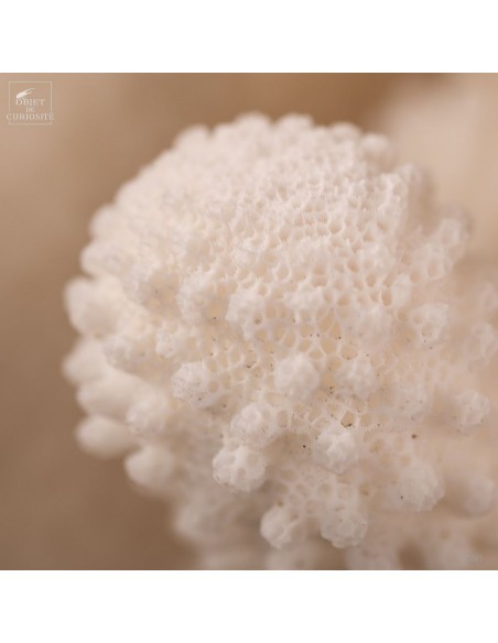 Le corail choux-fleur, observé sous l'eau, ressemble plus à un fruit qu'à un légume! Les polypes -la partie vivante du corail- de ce Pocillopora Eydouxi sont rose. Et les extrémités granuleuses de chaque branche ressemblent à des framboises! Ayant besoin de lumière solaire, il ne pousse pas très profond, et il dépasse rarement 25cm de diamètre. Celui-ci est donc un très beau spécimen.