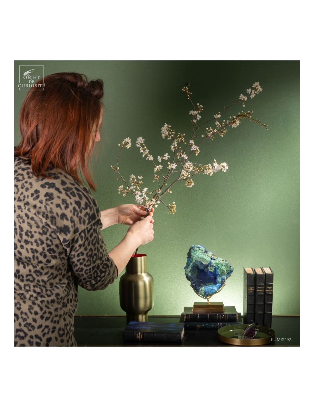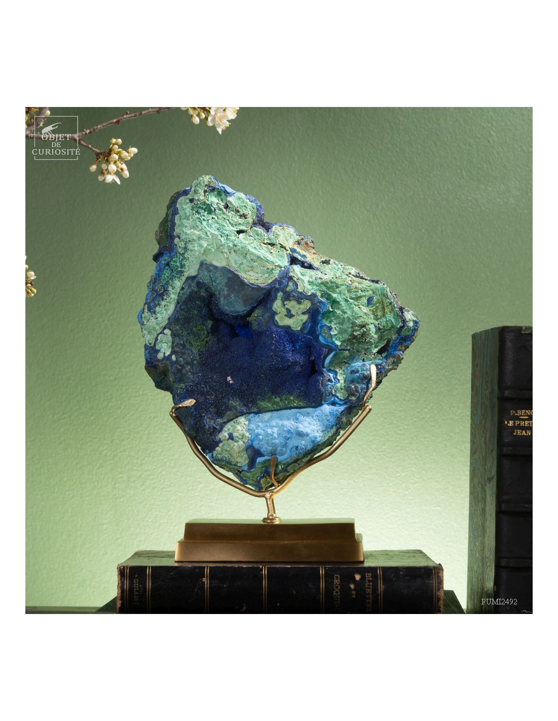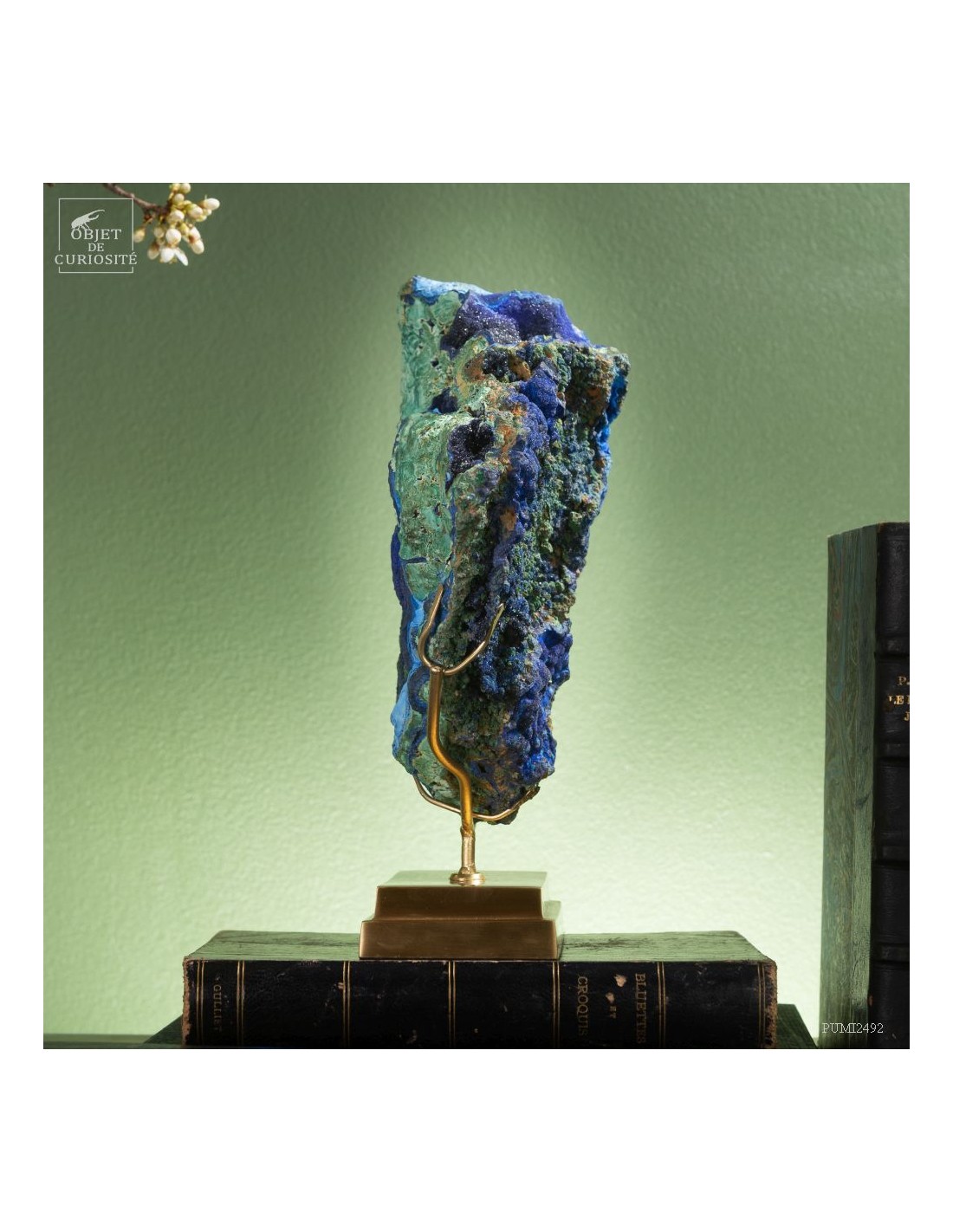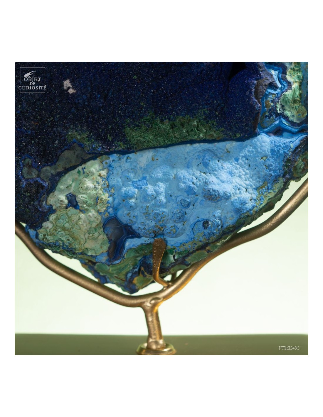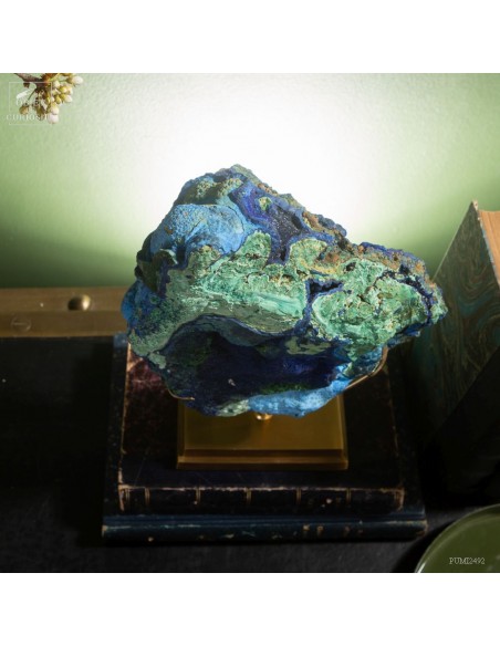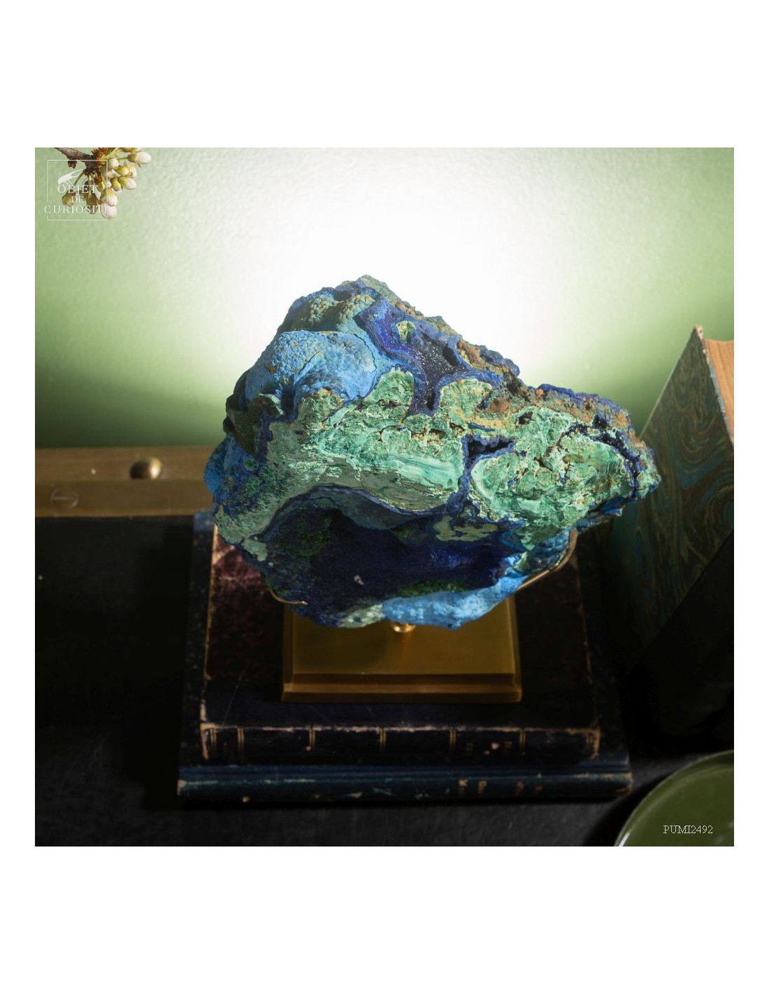 Deux couleurs éclatantes : ces deux minéraux sont souvent trouvés ensemble a proximité de veines de cuivre. L'Azurite, incroyablement bleue, est en fait en carbonate de cuivre, et peut dans certains cas évoluer vers la Malachite, intensément verte. Ces deux minéraux ont été utilisés comme pigments pour la peinture dès le 27ème siècle avant J.C. par les Egyptiens!