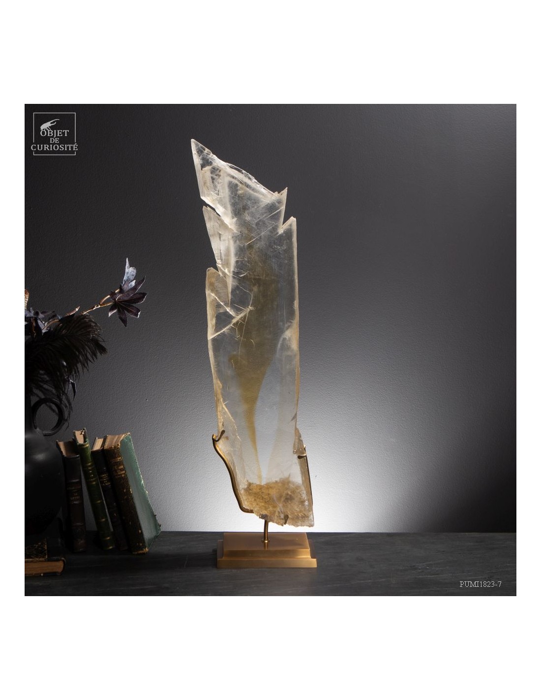 Ce cristal complet de Gypse est Français, et provient du village au nom évocateur de Caresse dans le sud Ouest. La très grande transparence de ce cristal ainsi que cette forme typique en queue de poisson, sont la signature des plus belles pièces trouvées dans cette mine. Sur base laiton.