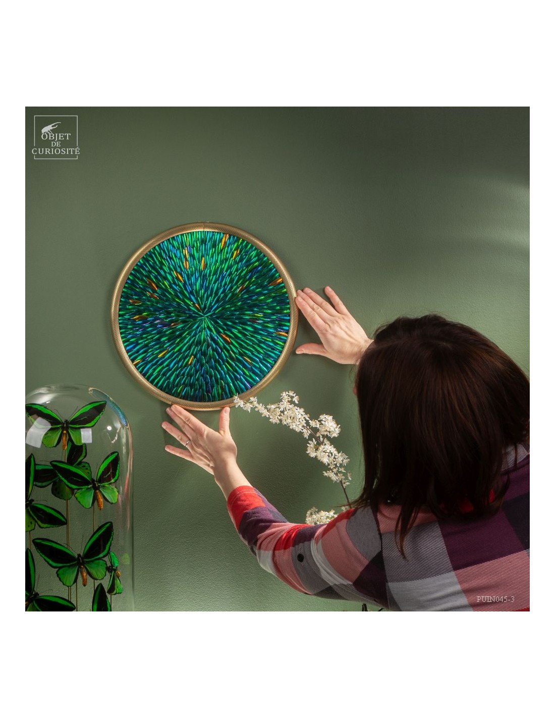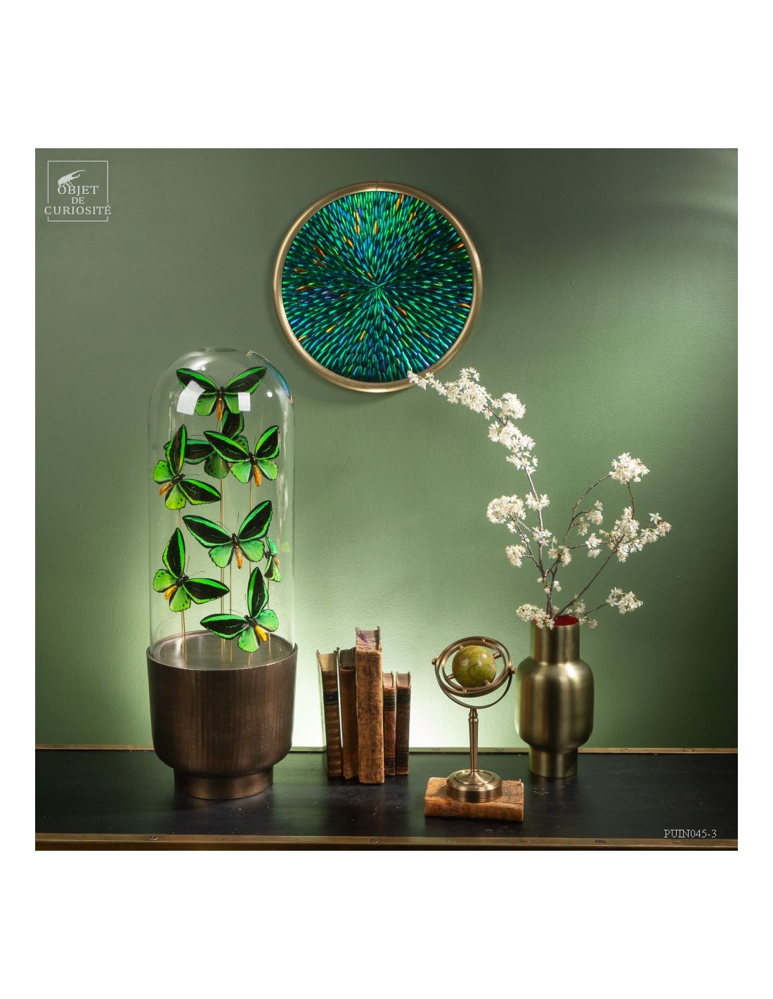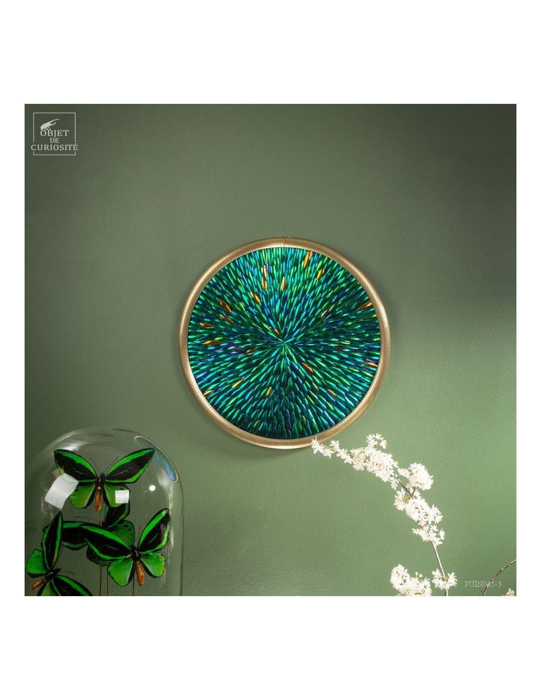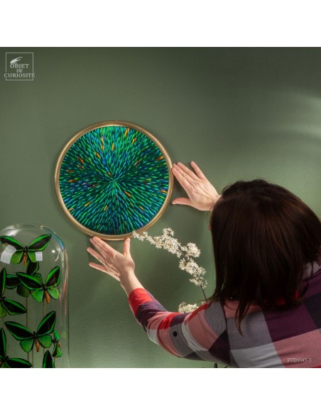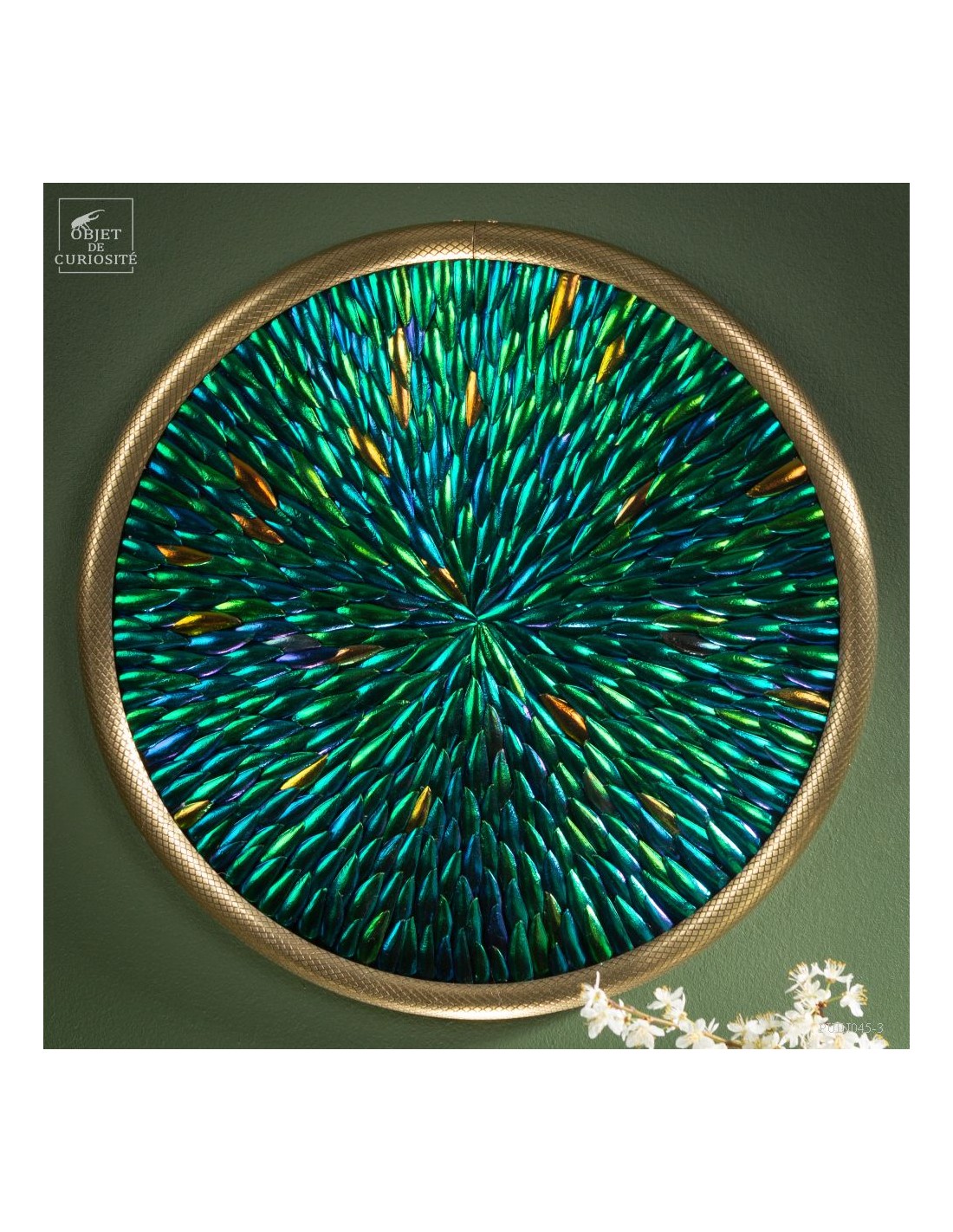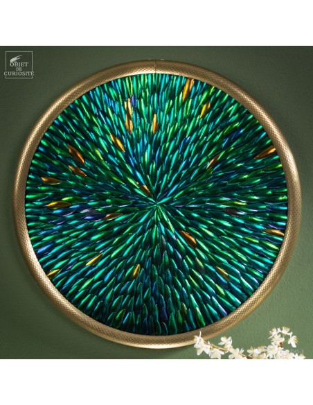 Tableau d'Elytres de Sternocera, cadre laiton rond