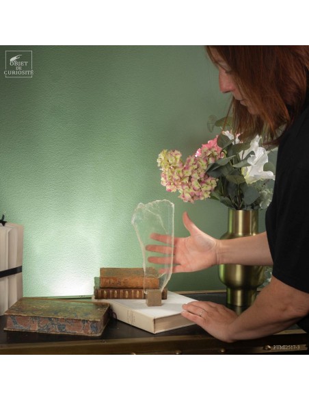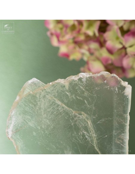 Ce cristal complet de Gypse est Français, et provient du village au nom évocateur de Caresse dans le sud Ouest. La très grande transparence de ce cristal ainsi que cette forme typique en queue de poisson, sont la signature des plus belles pièces trouvées dans cette mine.