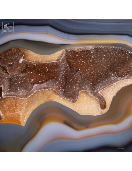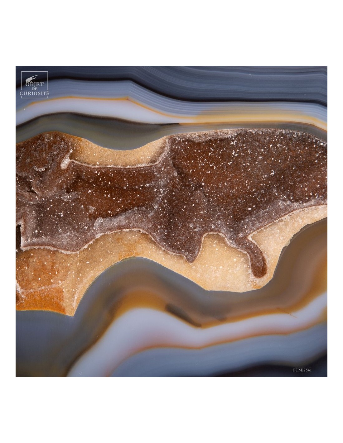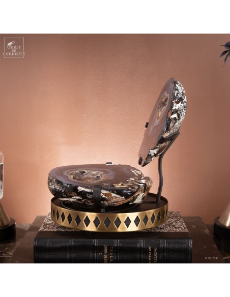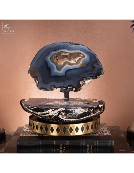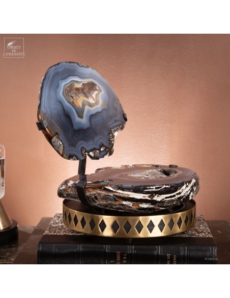 Le Brésil possède une diversité géologique exceptionnelle, avec des formations riches en silice, un composant clé des agates. Les régions du Sud du Brésil, comme l’État de Rio Grande do Sul, ont des conditions géologiques spécifiques. Les géodes d’agate se forment dans des cavités laissées par des bulles de gaz dans des roches volcaniques. Au fil du temps, ces cavités se remplissent de silice, qui cristallise pour former des bandes d’agate. Le Brésil a une longue tradition d’extraction et de traitement des agates. Les artisans locaux ont développé une expertise unique dans la coupe et le polissage des géodes pour en révéler la beauté intérieure.