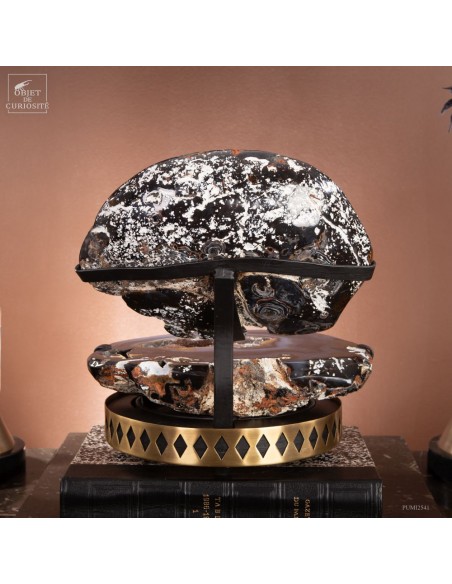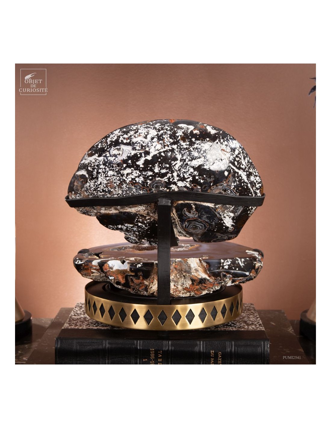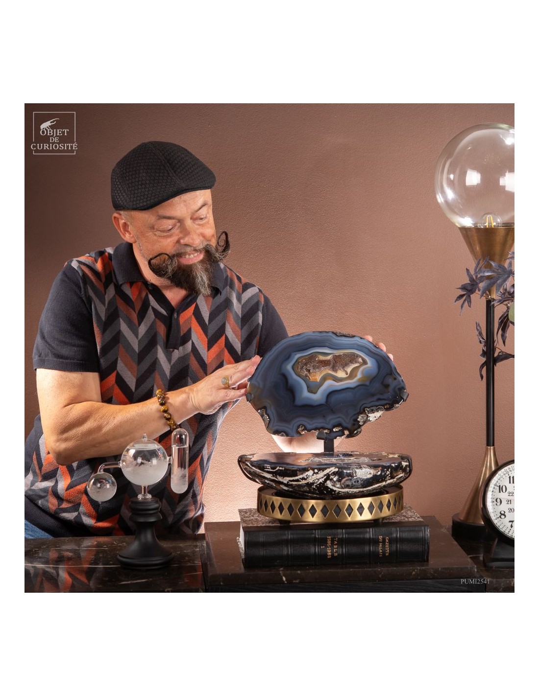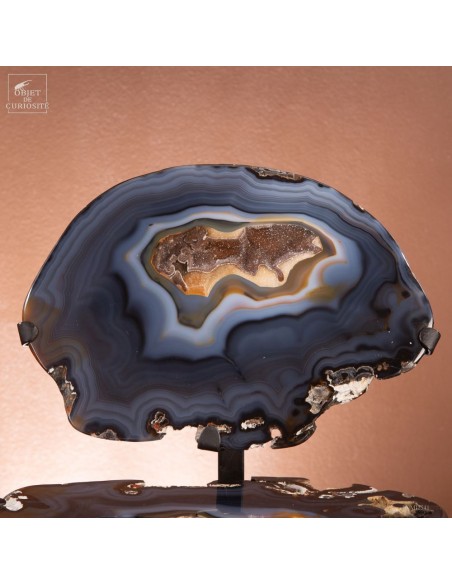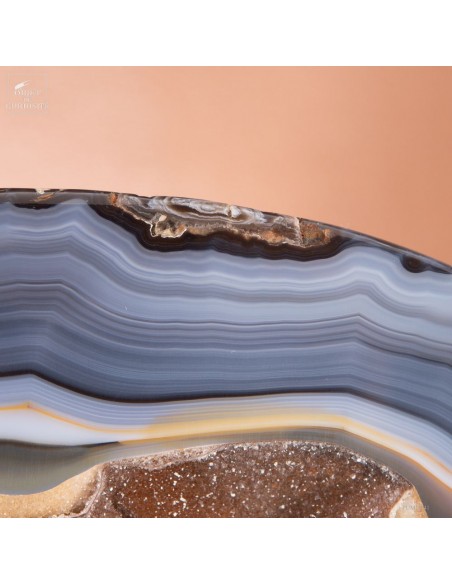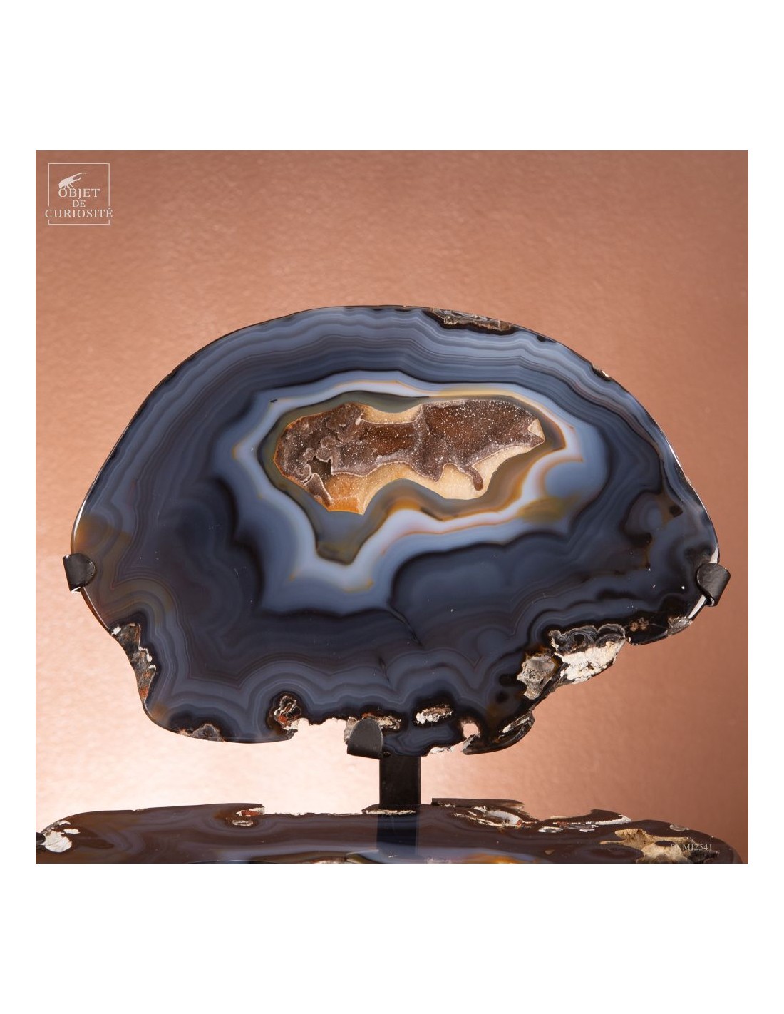 Cette géode d’agate du Brésil avec un couvercle donnant un effet chaudron, est une pièce de collection unique, alliant la beauté naturelle des formations géologiques à une touche d’artisanat et de symbolisme.