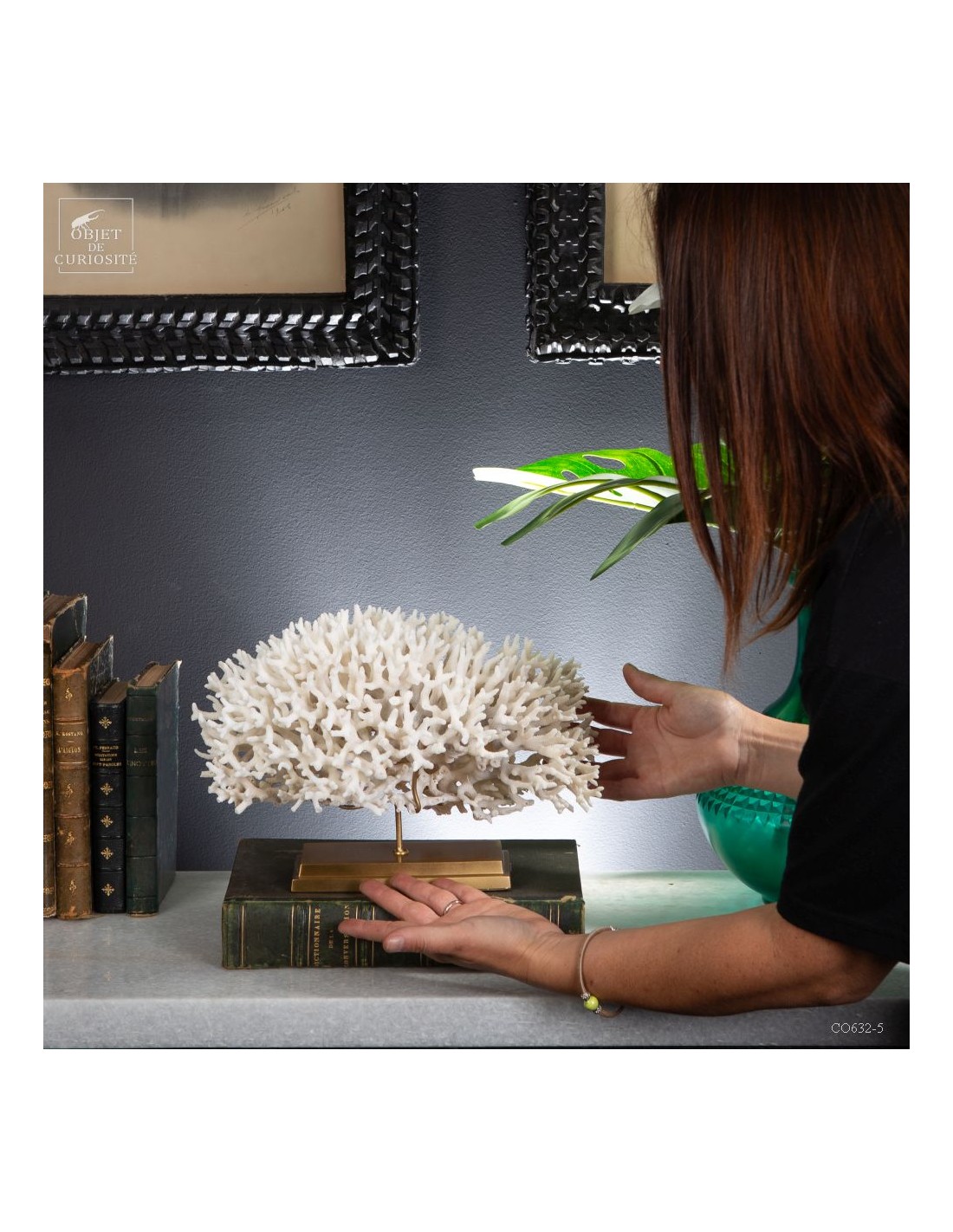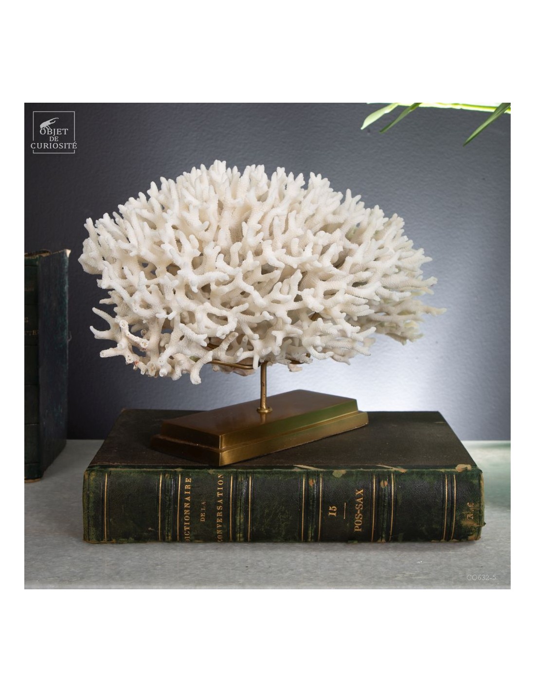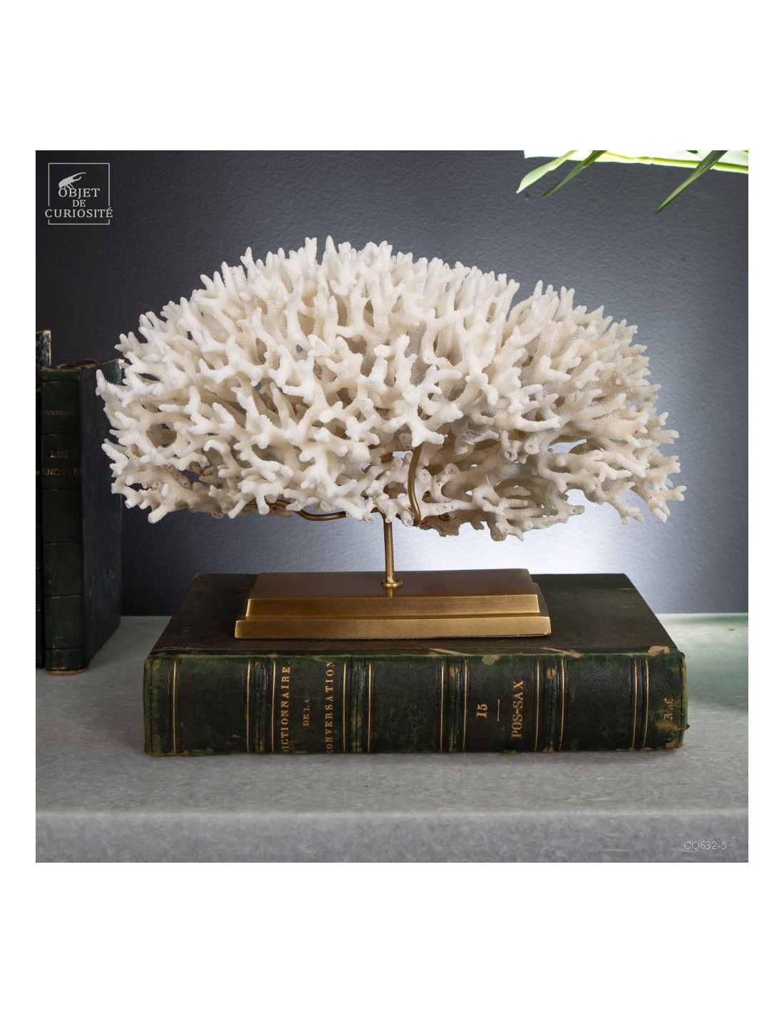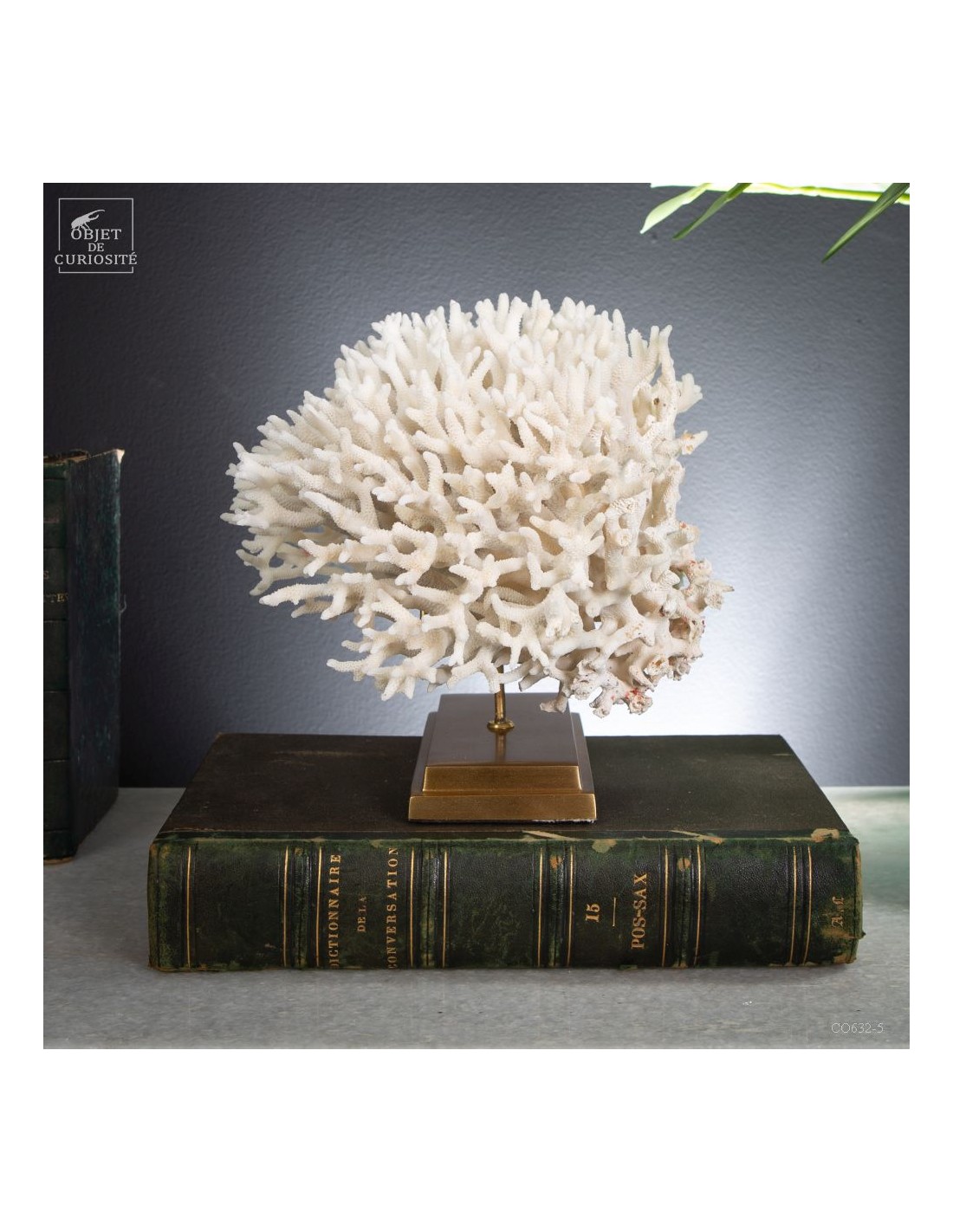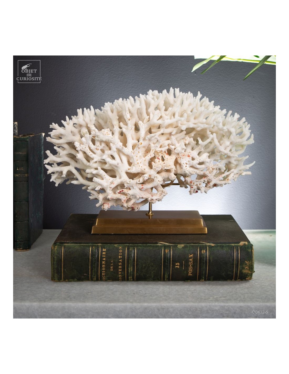 Corail nid blanc sur socle laiton. Composé de centaines de petites branches, ce corail provient des Iles Salomon. son nom scientifique: Seriatopora Hystrix. Sous l'eau, seules les pointes restent blanches, tout le reste est d'un rose fushia (ou jaune pour certaines sous-espèces) Ce corail est livré avec sa propre référence CITES (Convention de Washington sur les espèces à commerce sous surveillance)