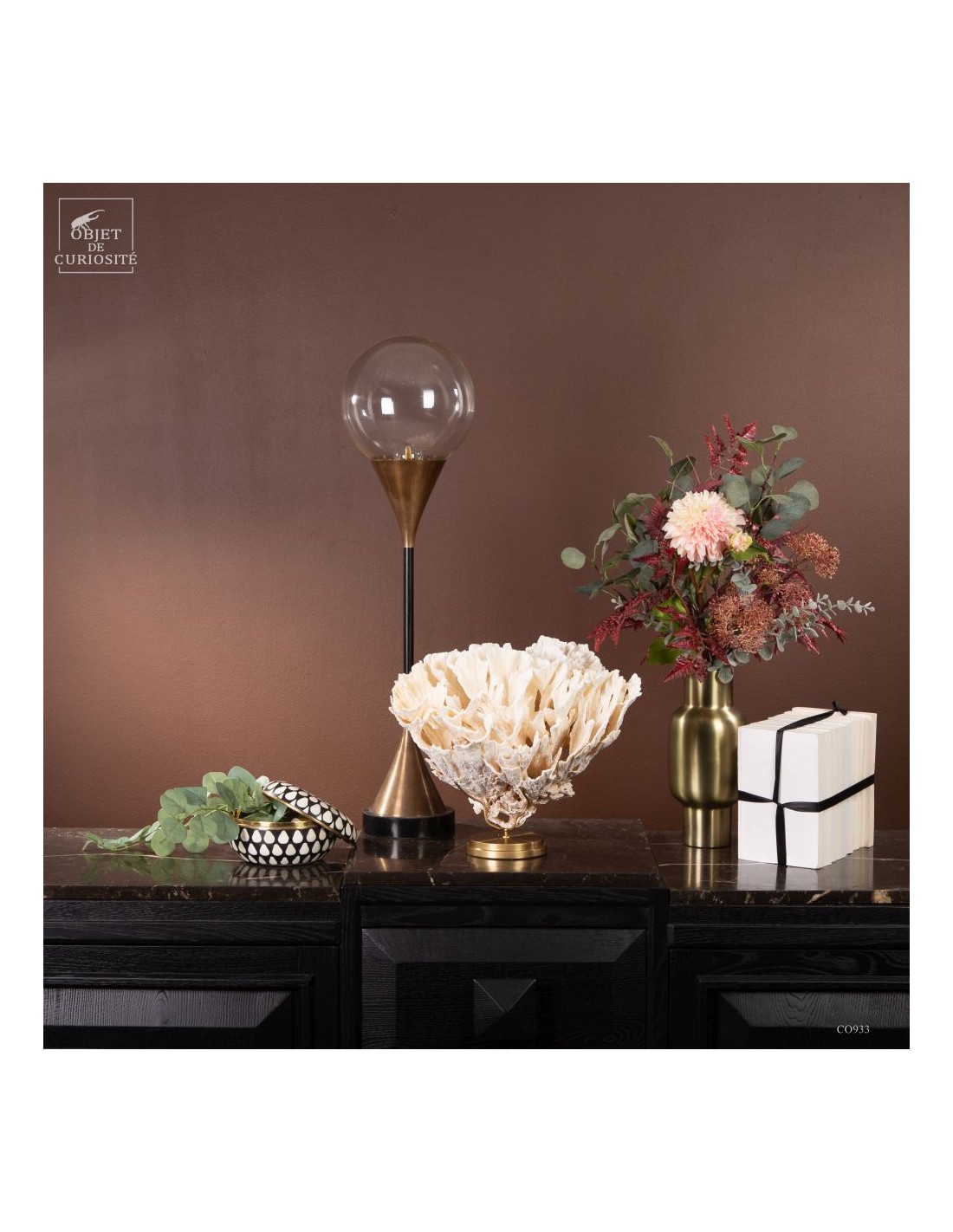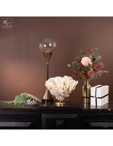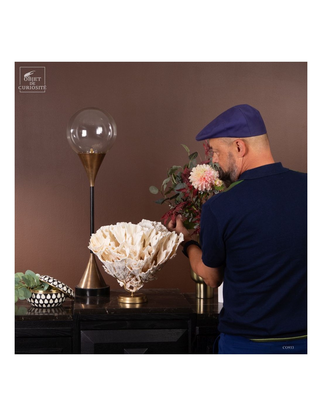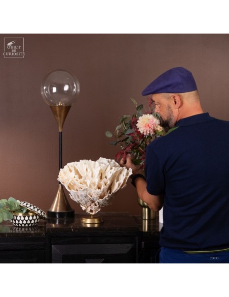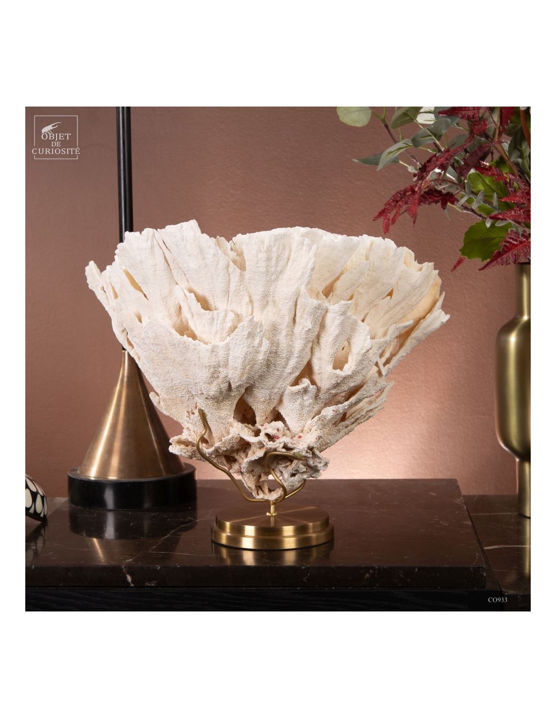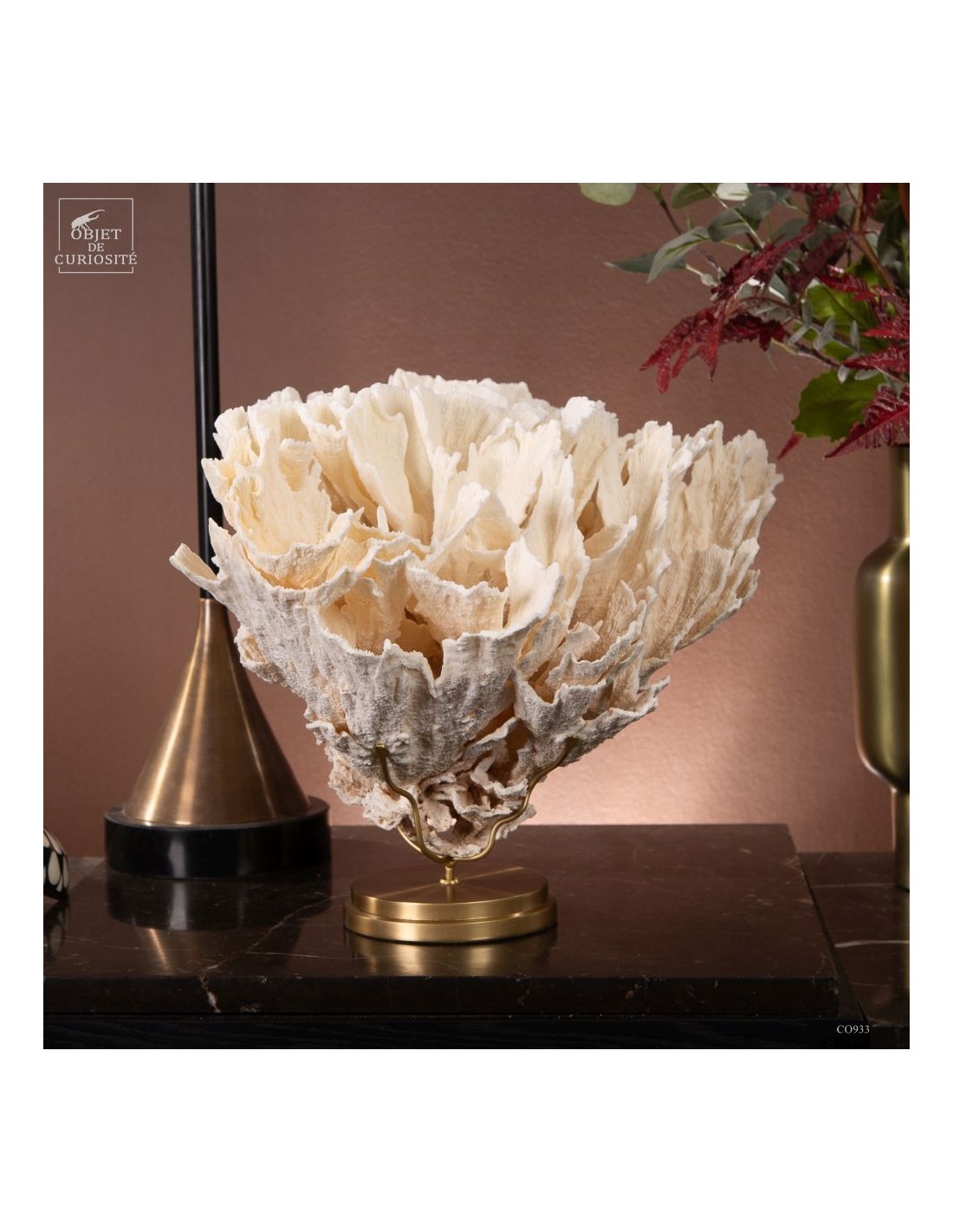 Le Montipora est un genre de corail de la famille des Acroporidae, reconnu pour ses formes variées, allant de plaques plates à des structures encroûtantes ou branchues. Ce corail spécifique présente une morphologie en forme de fleur, caractéristique de certaines espèces de Montipora, avec des “pétales” fins et délicats qui se déploient en colonnes radiales. Il a grandi dans les récifs coralliens du Pacifique, où les eaux relativement calmes favorisent son développement, notamment à l’abri des fortes vagues. La coloration rose vif le long des bordures est due à la présence de pigments fluorescents qui captent la lumière ultraviolette.