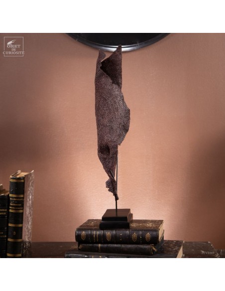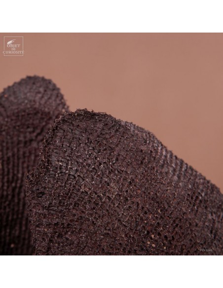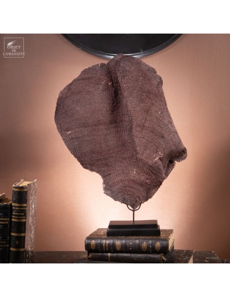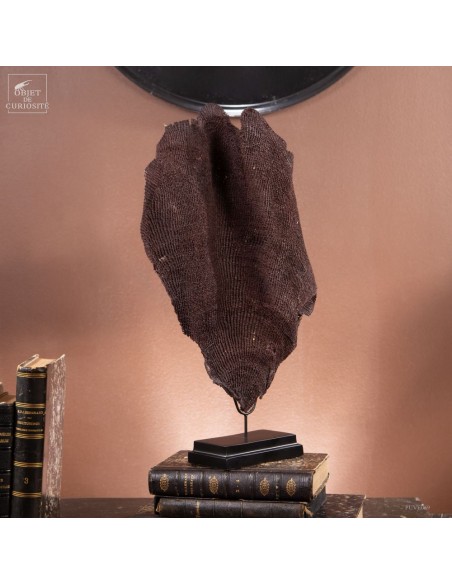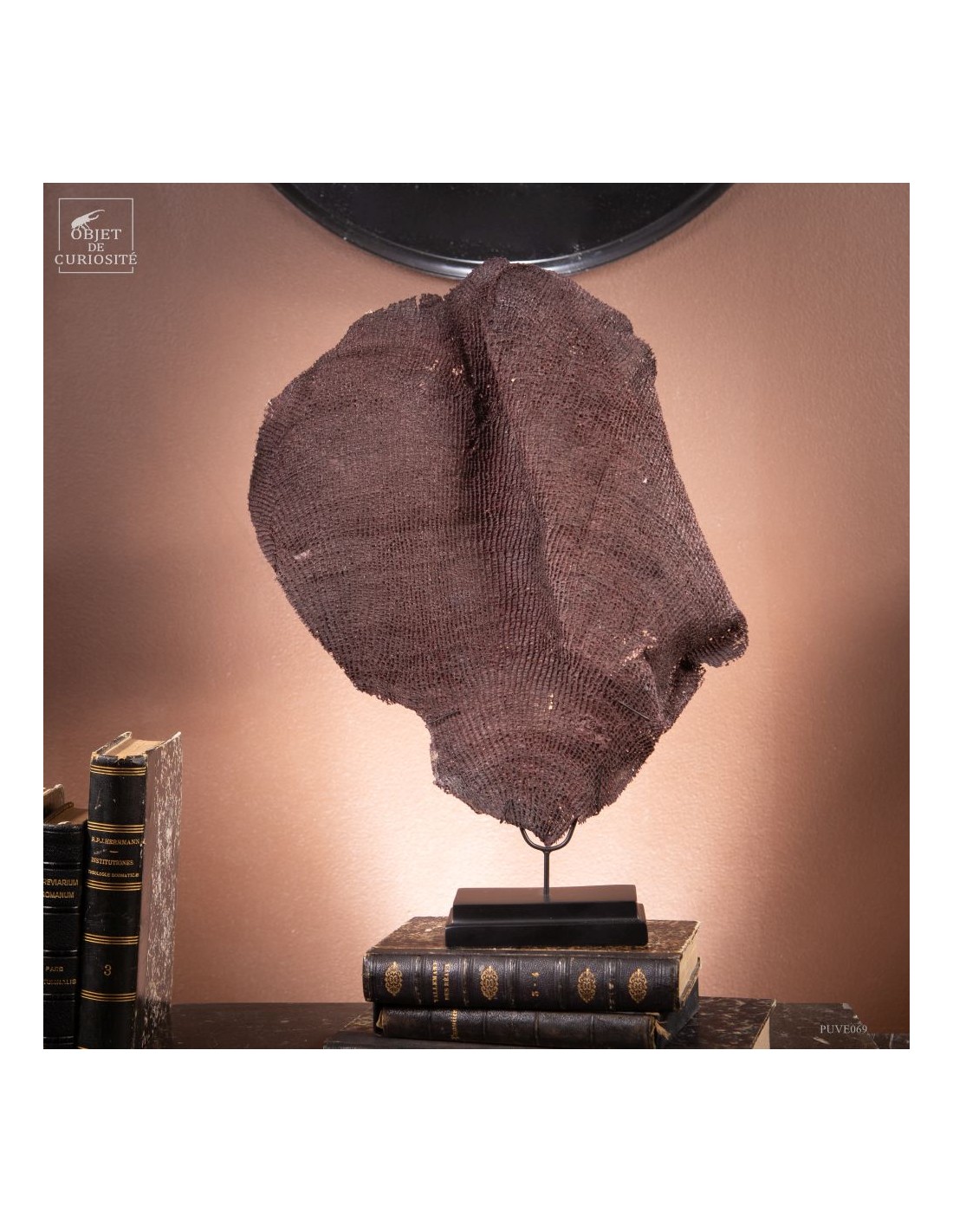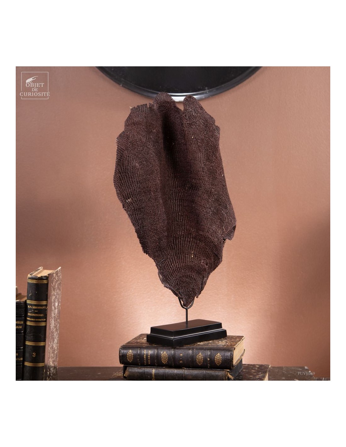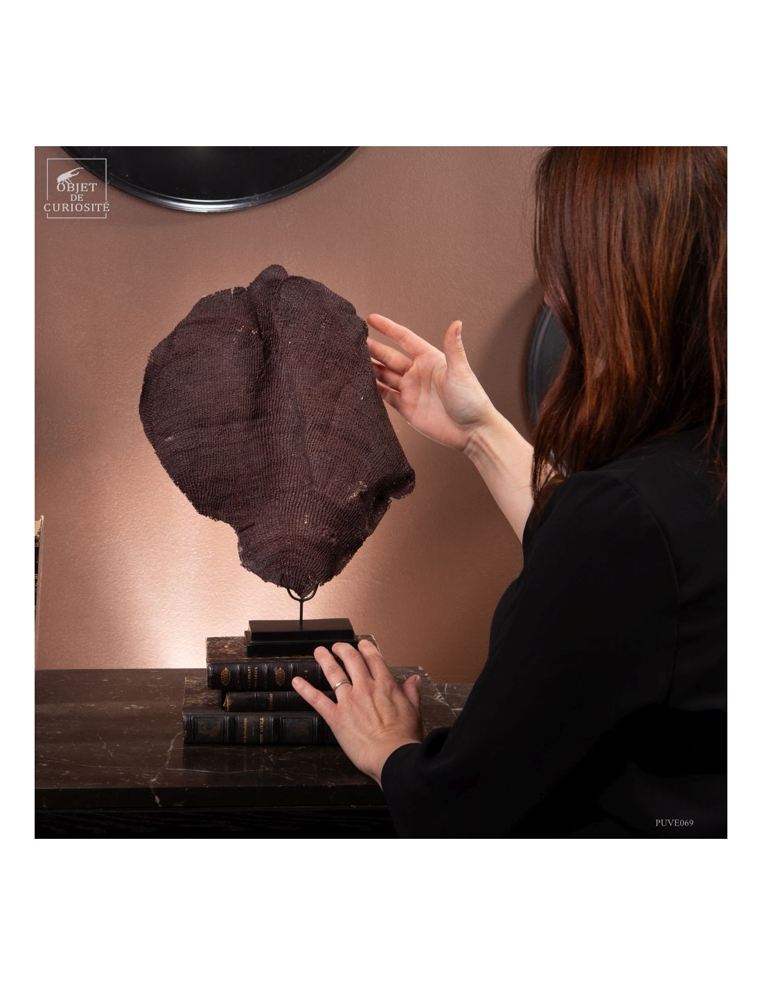 Présentée sur une base noire, cette éponge révèle ses détails tissés délicatement par la mer. Sa texture, évoquant parfois le velours, semble avoir été brodée par des courants marins.