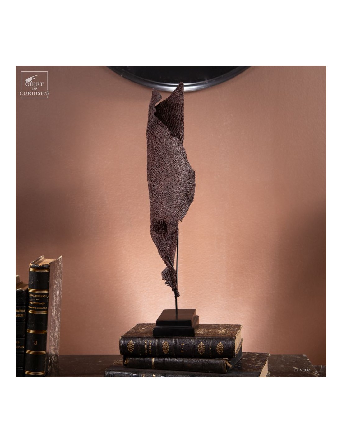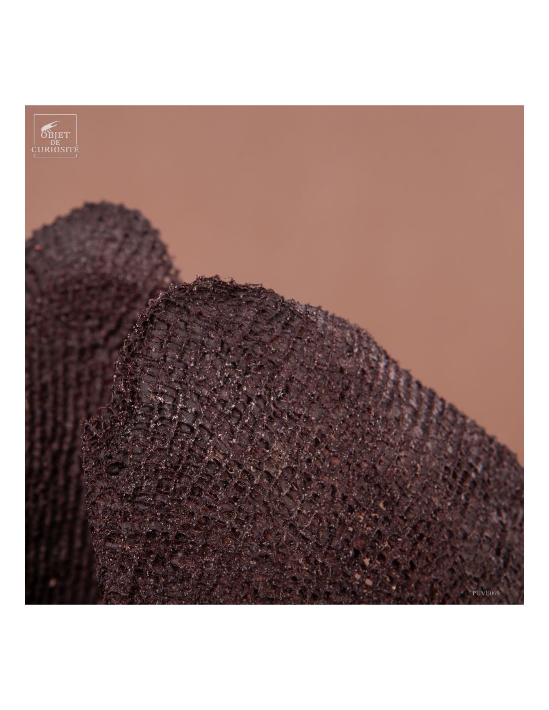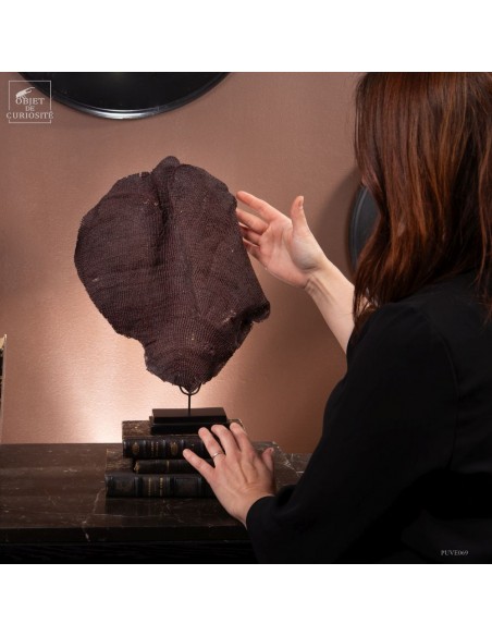 L’Ianthella basta, aussi connue sous le nom d’éponge oreille d’éléphant, se développe principalement dans les récifs coralliens de la région Indo-Pacifique, où les courants marins sont forts. Cet organisme, récolté dans les eaux tropicales de l’Indonésie, se distingue par sa forme en éventail et sa couleur naturellement violette, un véritable cadeau de la nature que seuls quelques plongeurs locaux ont la chance d’admirer.