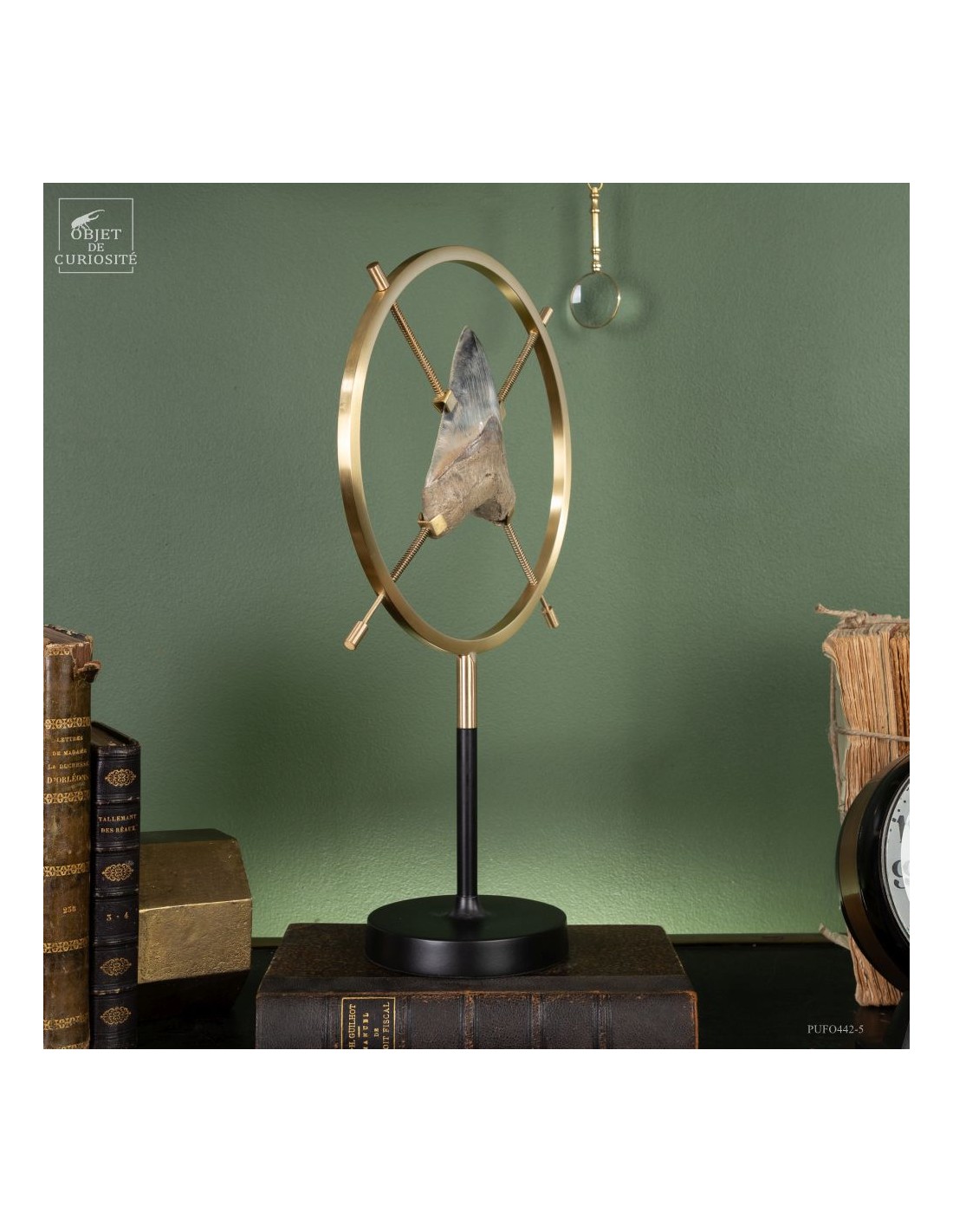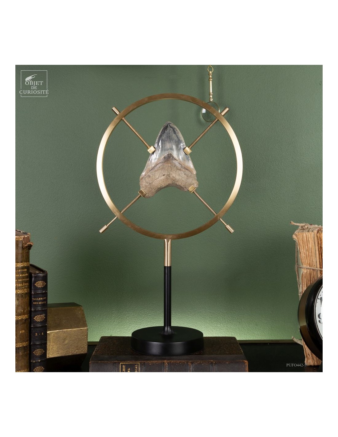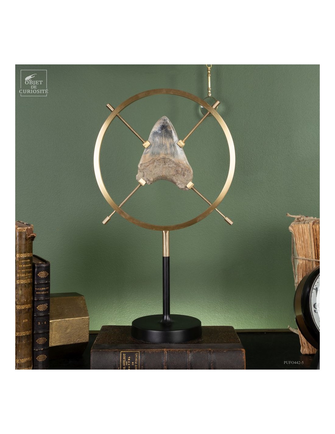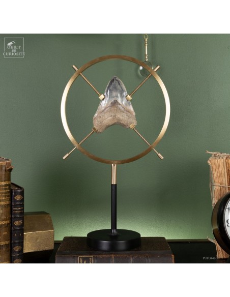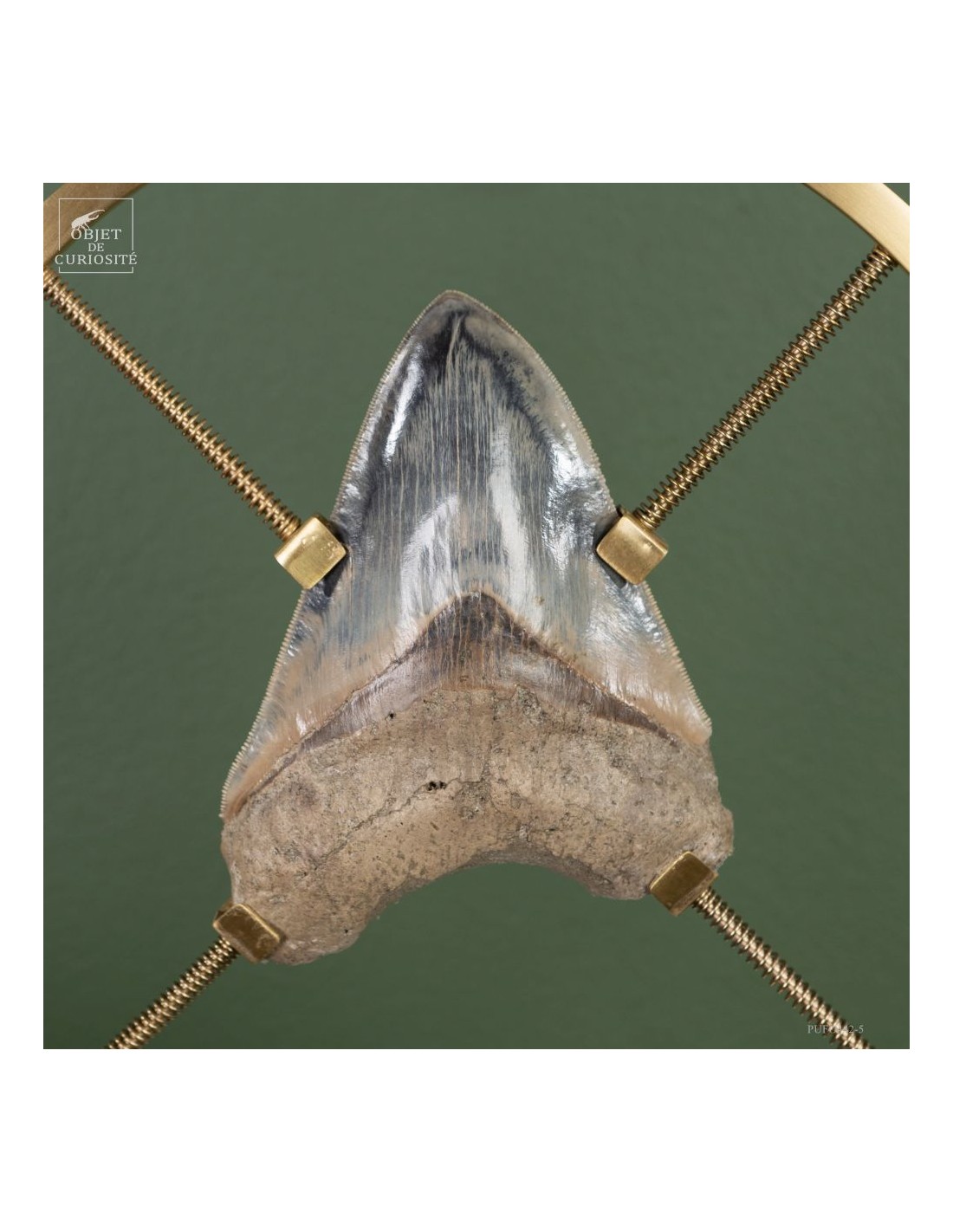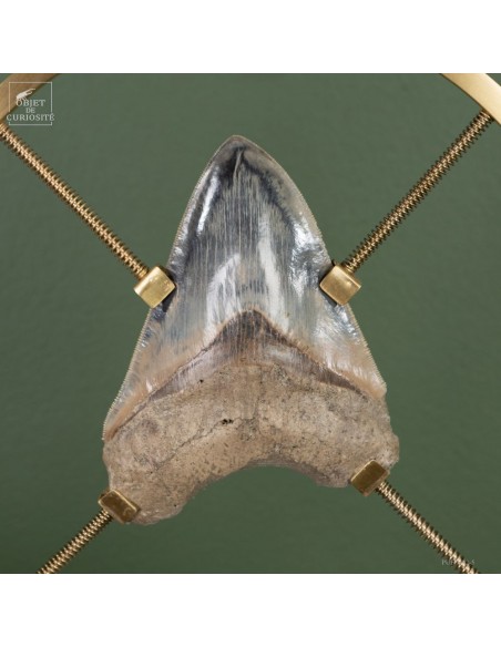 De ce géant des mers on ne connaît que les dents. Mais quelles dents! Ce fossile découvert en Caroline du Sud aux USA à entre 25 et 2.5 millions d'années. Il appartenait à un requin géant: l'Odontus Megalodon qui pouvait mesurer jusqu'à 16 mètres de long. comme tous les requins, son squelette était composé uniquement de cartilage, et la seule partie que nous pouvons tenir dans nos mains ce sont les dents. et, chose incroyable: elle est encore tranchante.