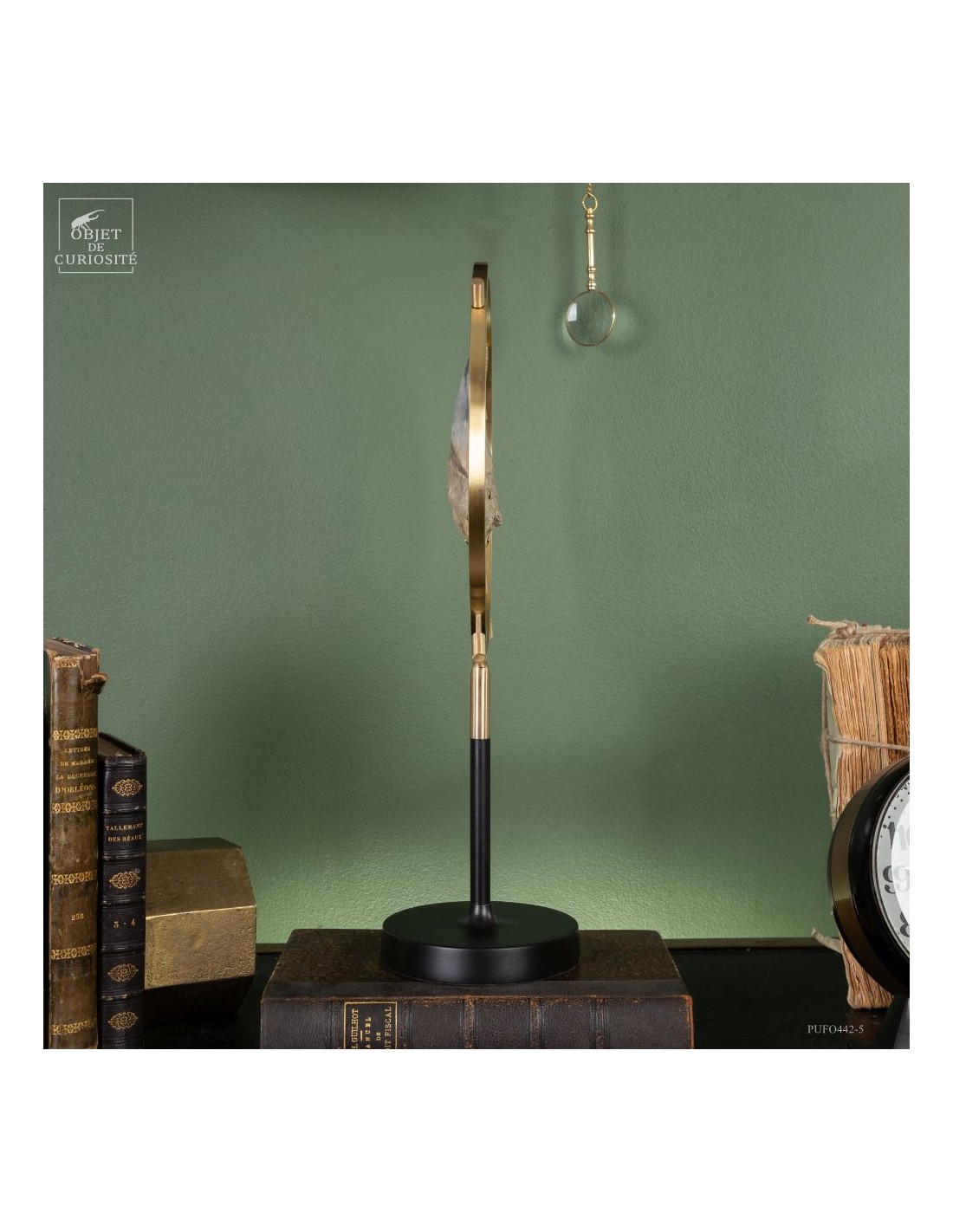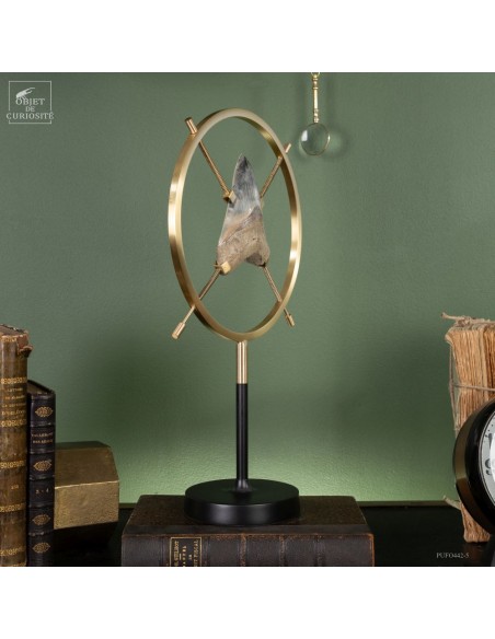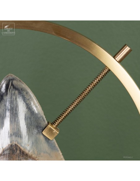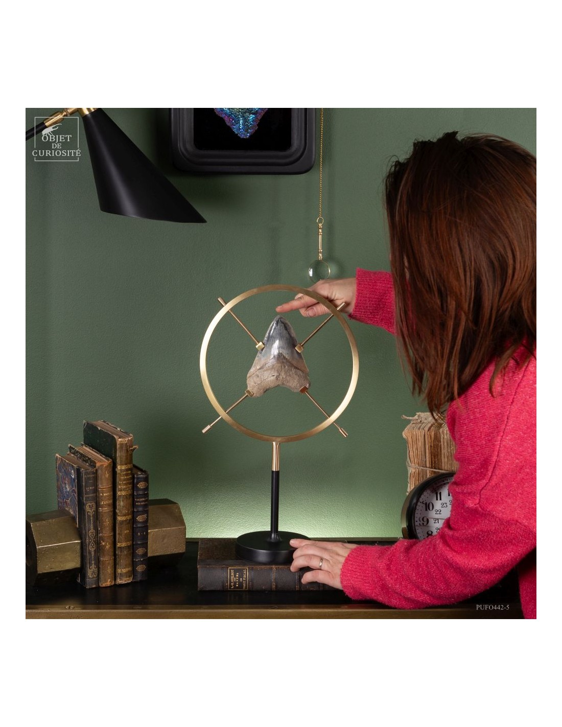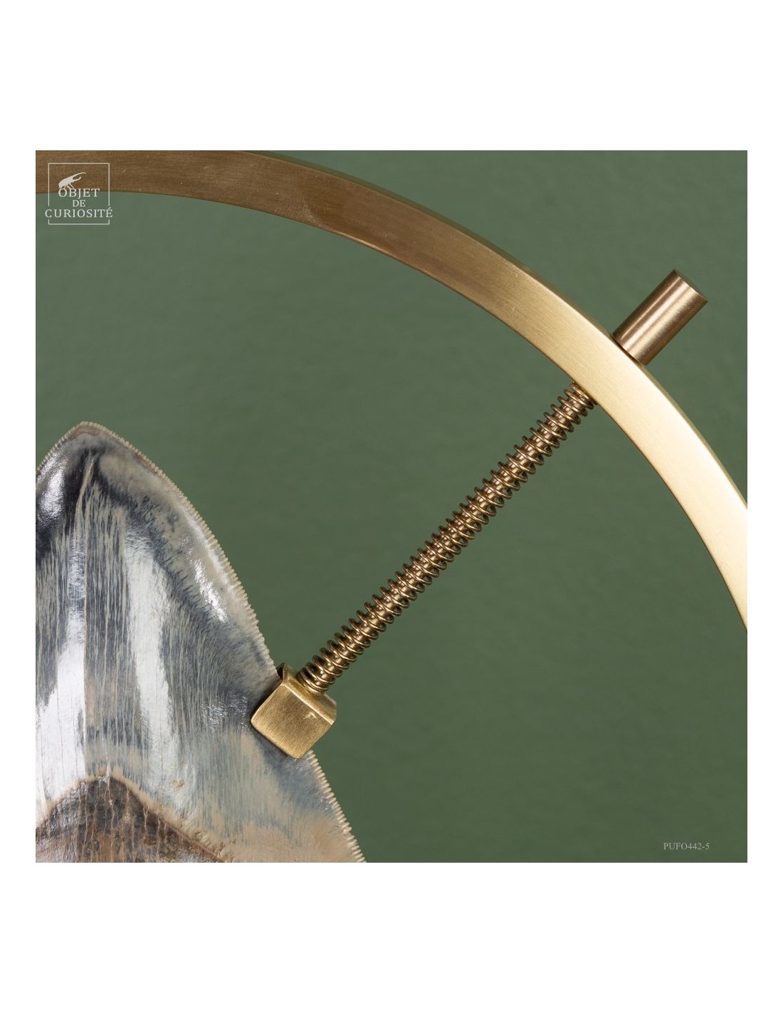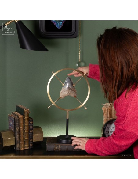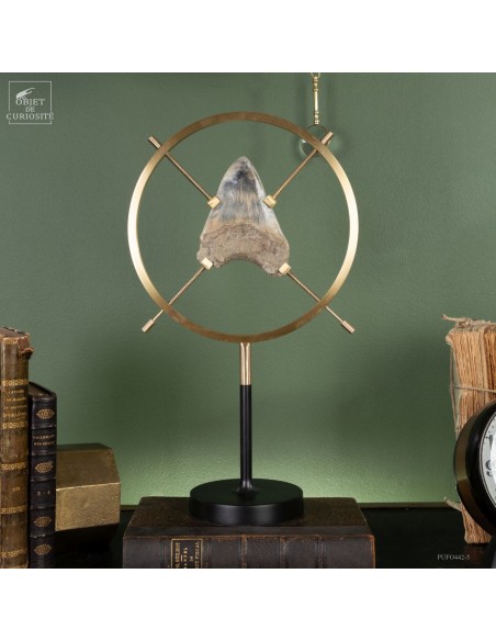 De ce géant des mers on ne connaît que les dents. Mais quelles dents! Ce fossile découvert en Caroline du Sud aux USA à entre 25 et 2.5 millions d'années. Il appartenait à un requin géant: l'Odontus Megalodon qui pouvait mesurer jusqu'à 16 mètres de long. comme tous les requins, son squelette était composé uniquement de cartilage, et la seule partie que nous pouvons tenir dans nos mains ce sont les dents. et, chose incroyable: elle est encore tranchante.