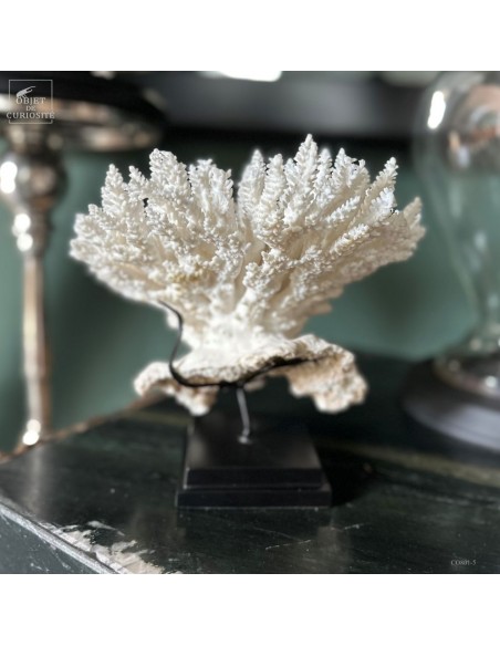 L’Acropora latistella est un corail plutôt robuste,malgré ss forme de vague enroulée. Originaire des îles Salomon, il prospère entre la surface et 5 mètres de profondeur, là où la lumière du soleil est essentielle à sa croissance. Ce corail n’est pas particulièrement coloré : sa teinte beige naturelle est parfois rehaussée de polypes mauves, mais c’est surtout son squelette blanc éclatant qui fascine.