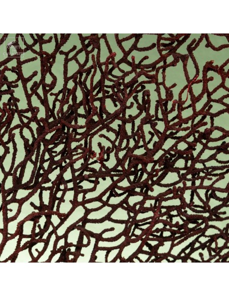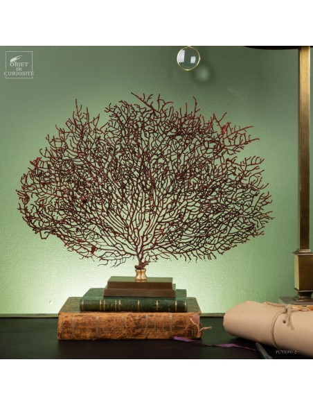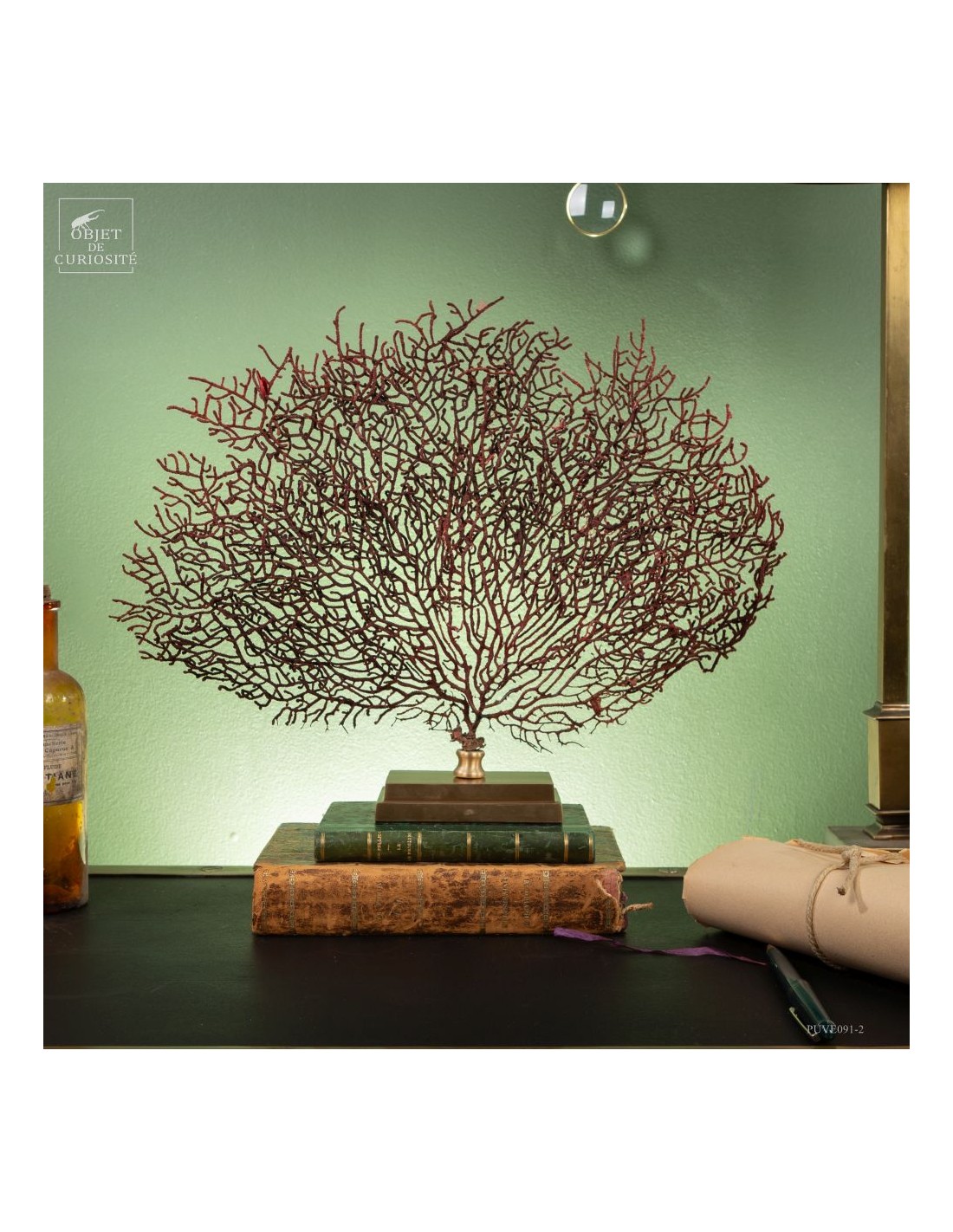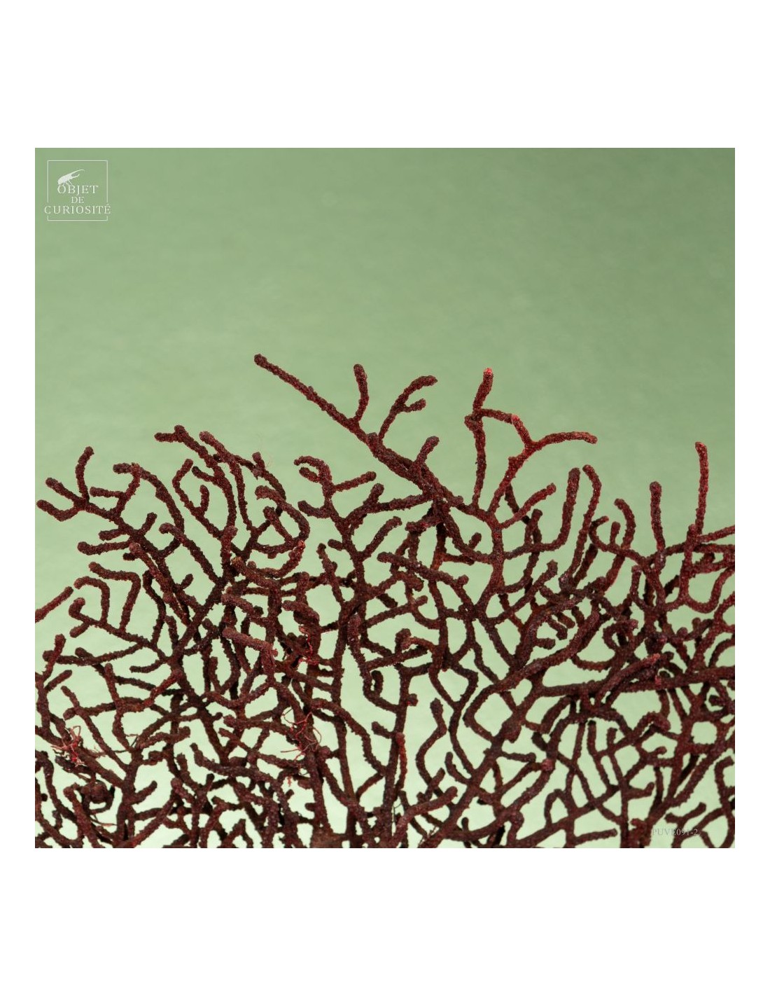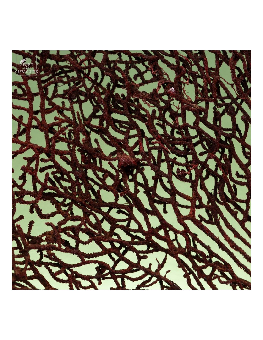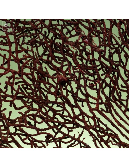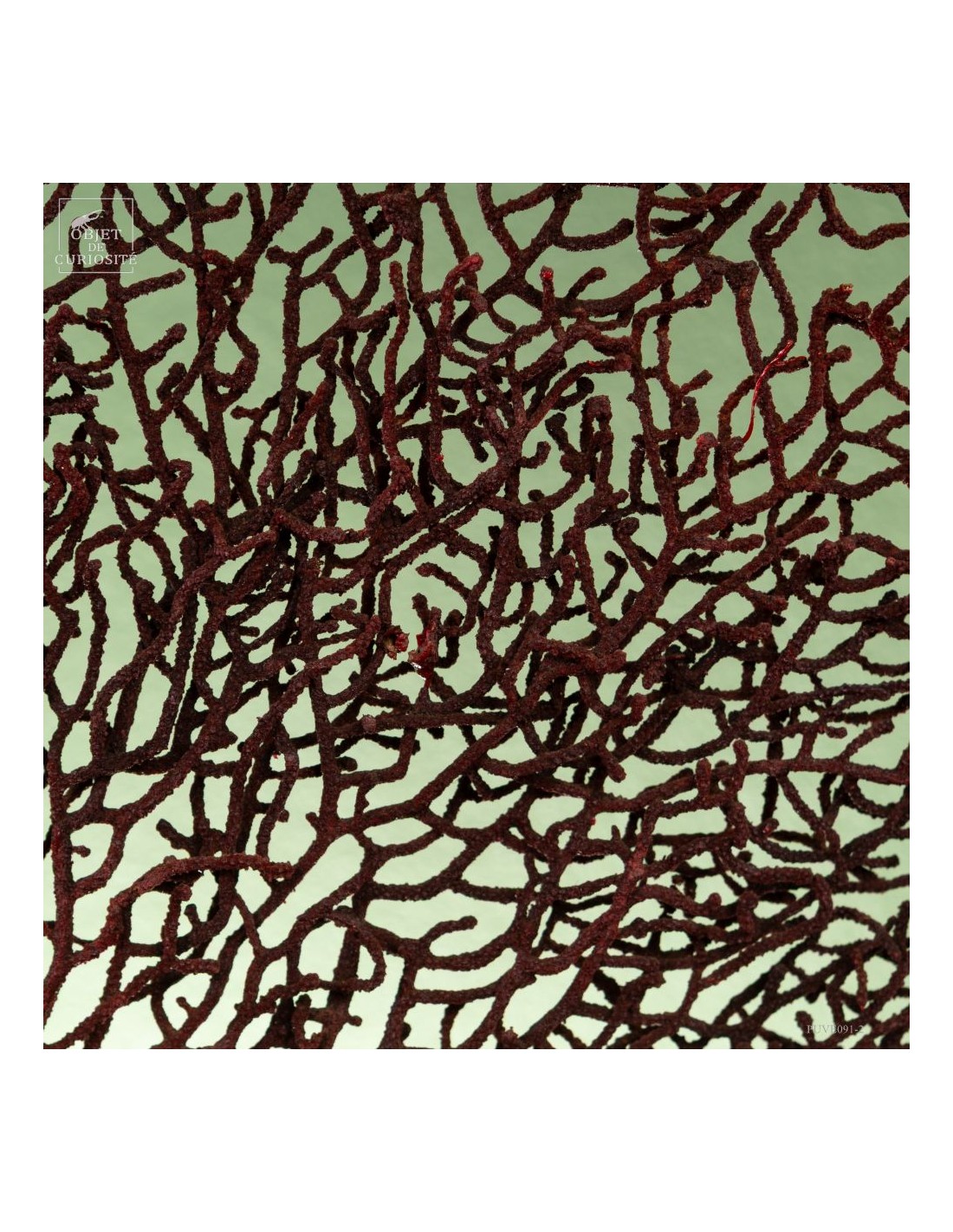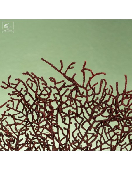 C'est une Gorgone rouge (Acabaria biserialis) que l'on rencontre entre 20 et 100 mètres de profondeur. Il est nécessaire d'utiliser une lampe torche pour apprécier leur éclat, car à cette profondeur, le rouge parait bleu sombre. Fixées perpendiculairement à leur support, les ramifications colonisées de polypes filtrent l'eau au gré du courant pour capturer les micro-organismes en suspension. Bien sûr, ce rouge foncé, c'est sa couleur naturelle.
