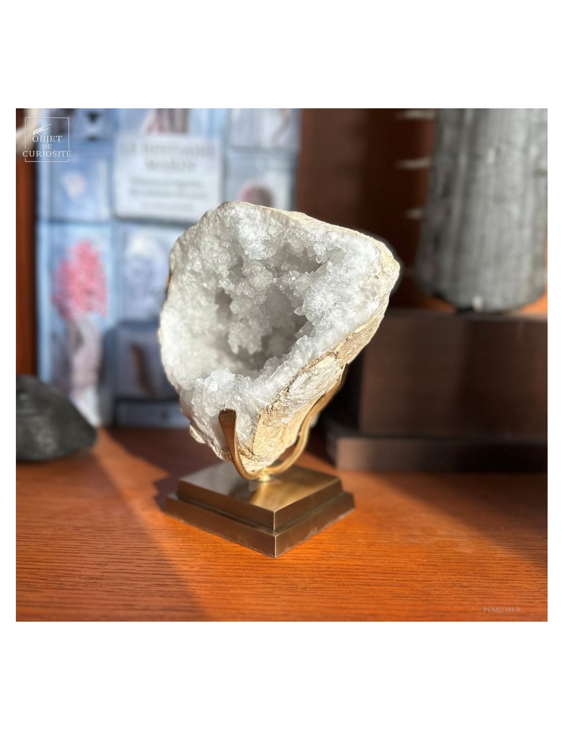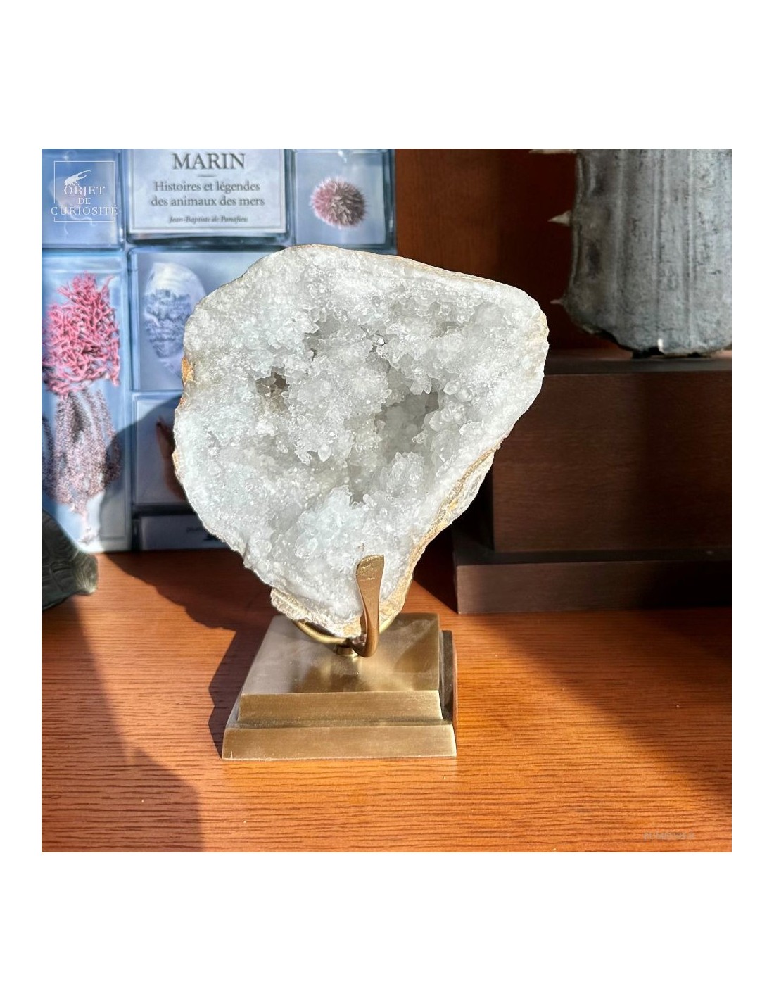 Géode de quartz ouverte (Maroc) -1.8kg - sur base laiton