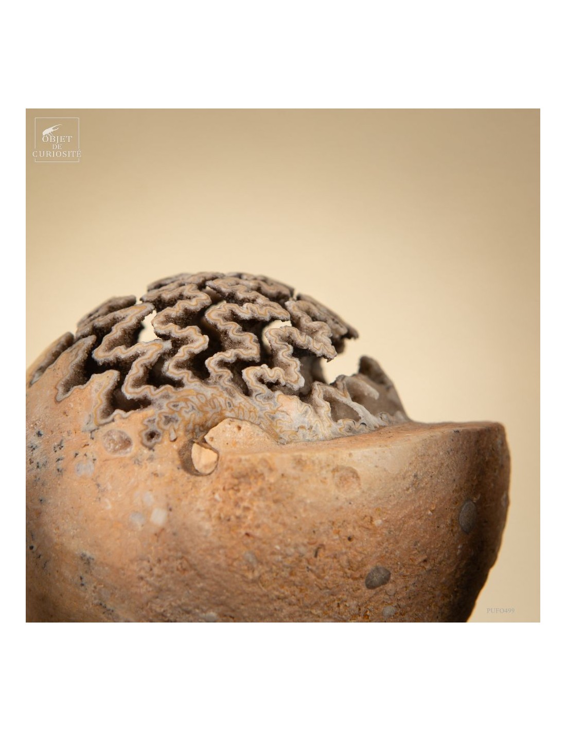 Une pièce discrète, mais fascinante : entre fossile scientifique et bijou minéral, elle condense des millions d’années d’histoire dans un écrin de curiosité.