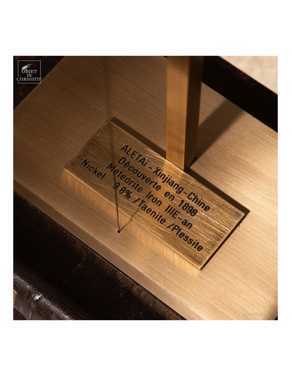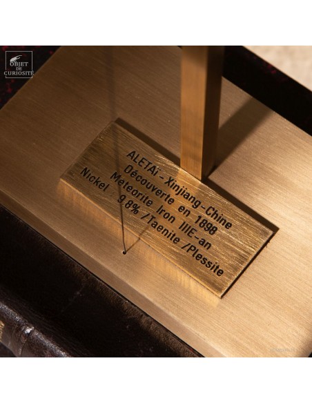 Une de ses faces a été légèrement coupée, non pas par coquetterie, mais pour révéler la texture de son cœur métallique. Il est d’usage, chez les collectionneurs comme chez les chercheurs, de polir une surface afin de mieux observer la matrice interne, parfois jusqu’à y faire apparaître les fameuses figures de Widmanstätten. Ces figures sont des motifs géométriques dues à la cristallisation très lente du fer et du nickel dans le vide spatial, impossible à reproduire sur Terre.